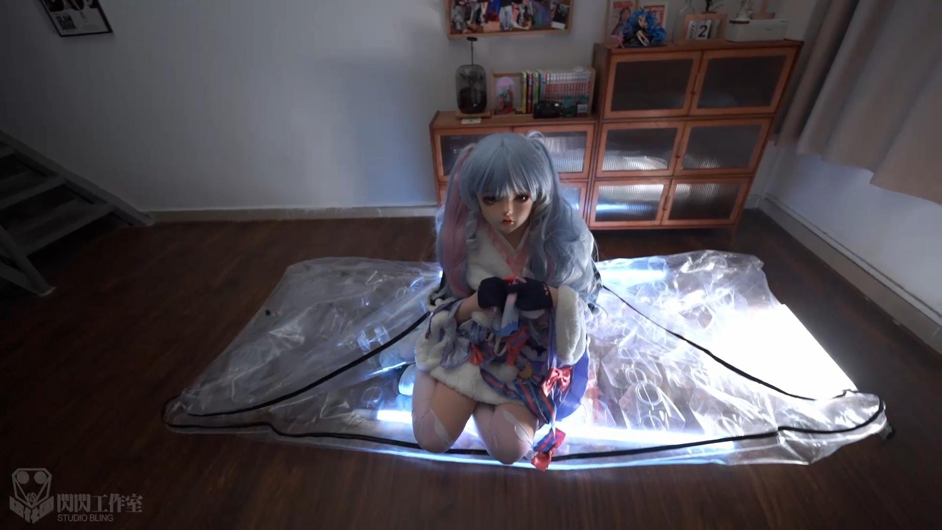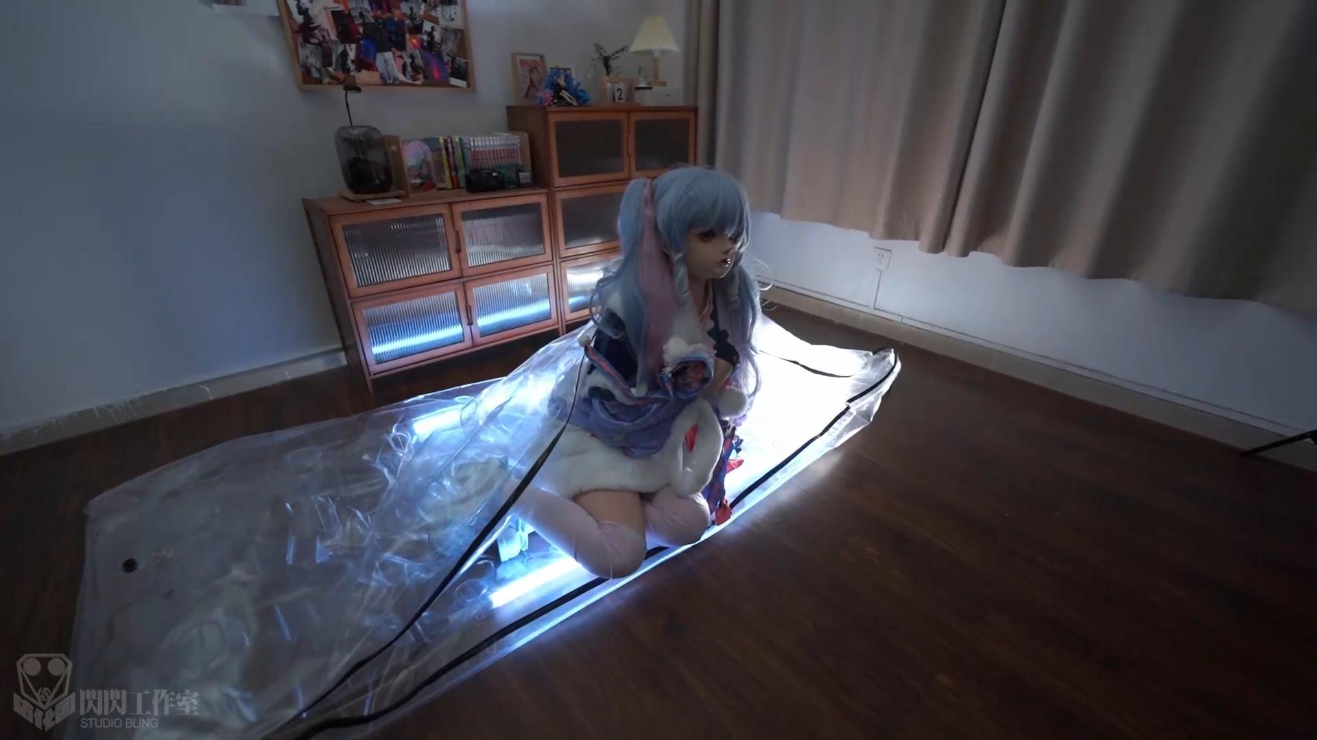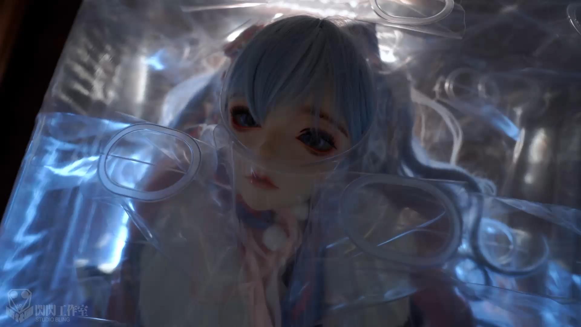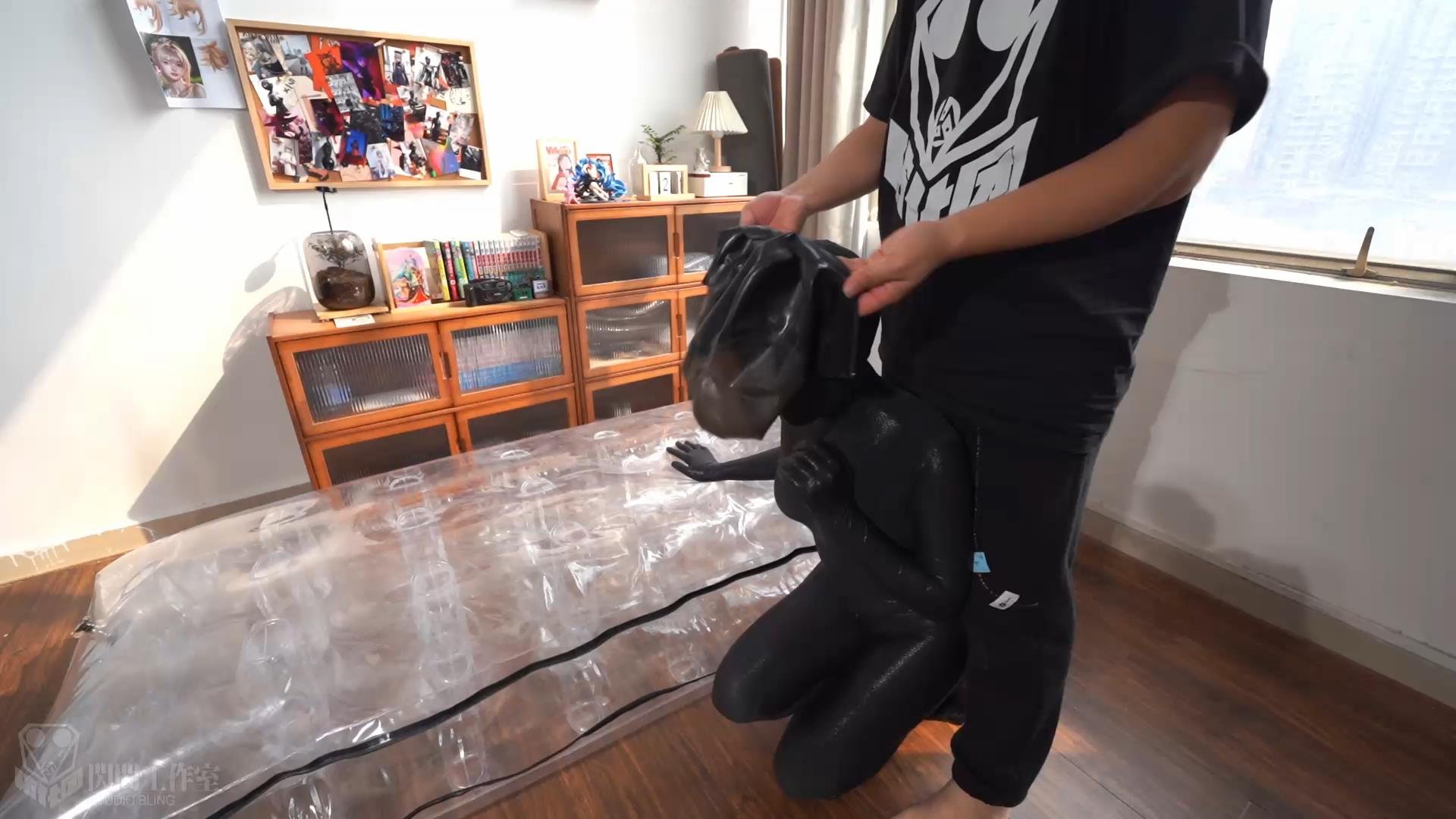 ファスナーを開けて包装を外し、人形を自分で這い出し、ラテックスの呼吸ヘッドカバーをつけて、再び保護ベッドに入れた