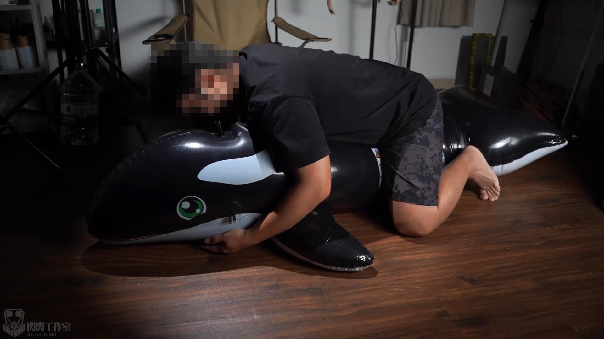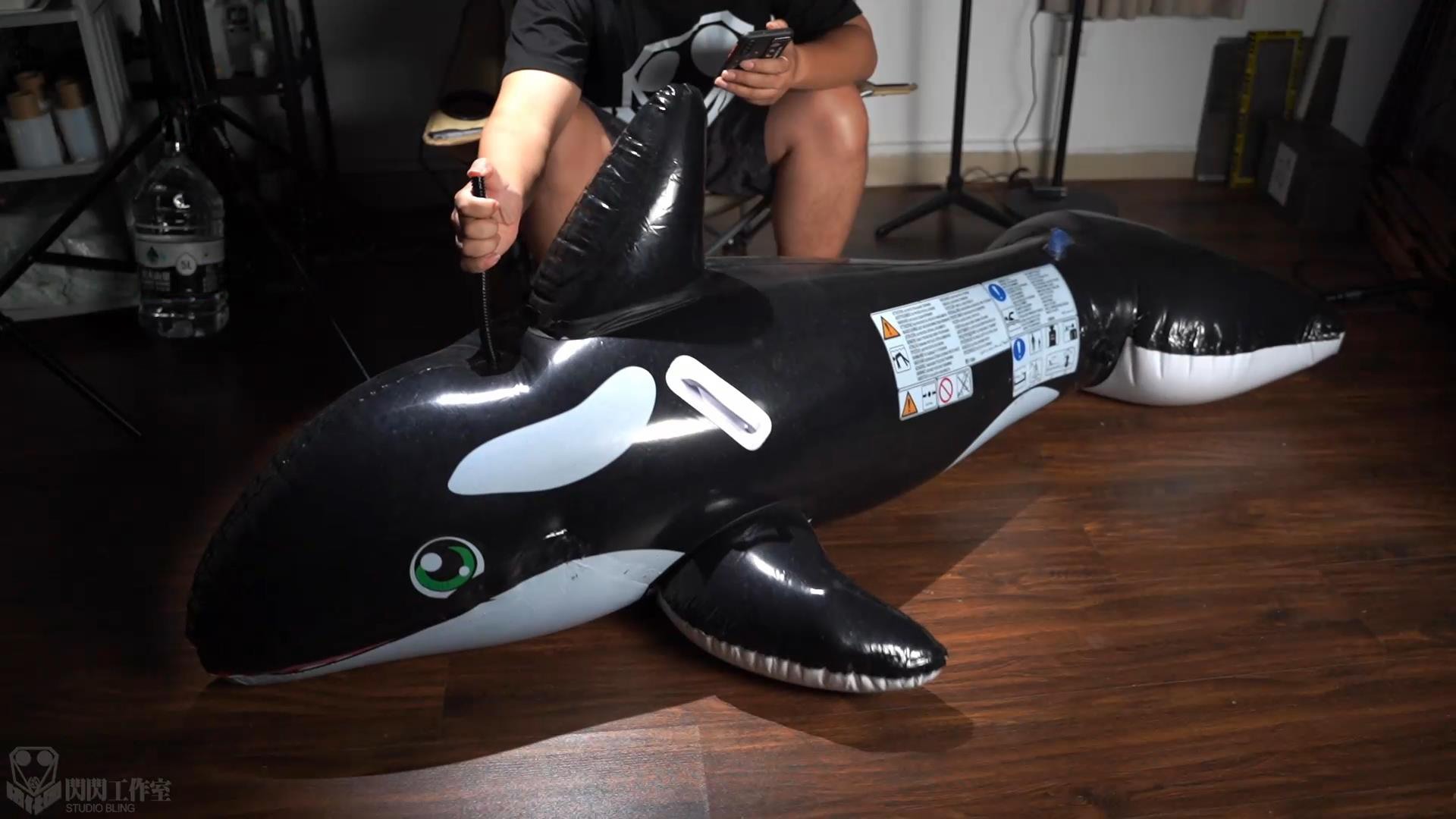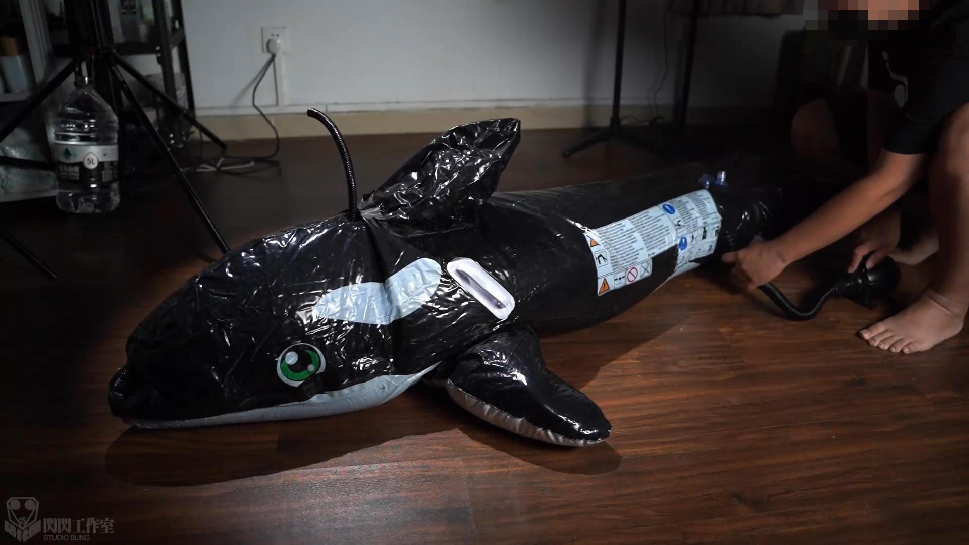 ファスナーを上げると、まず下気室に空気を入れ始め、大出力の空気ポンプを利用して空気を流し込むと、クジラ全体が敷かれ、人は中で少し快適になったはずだ