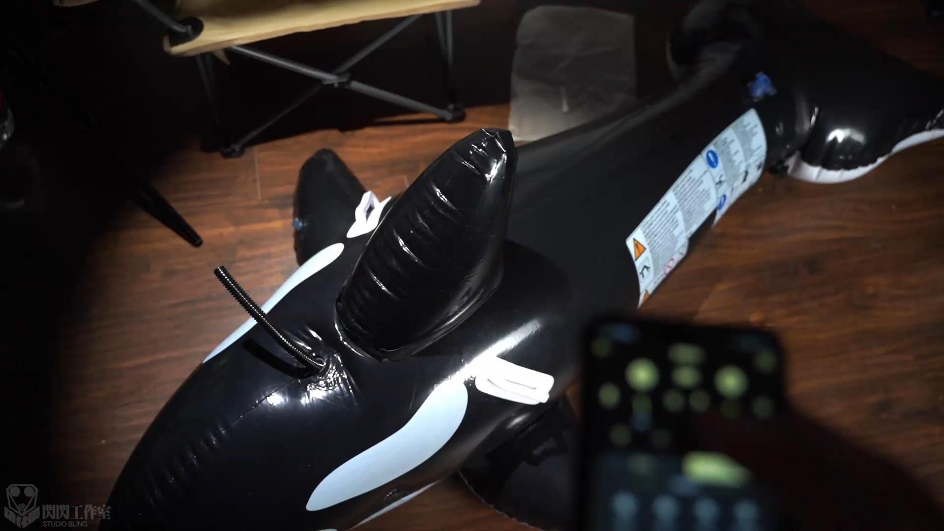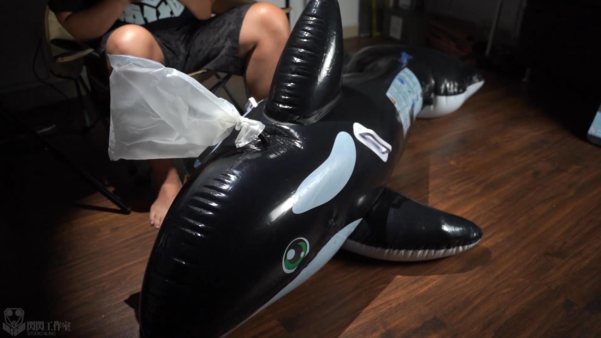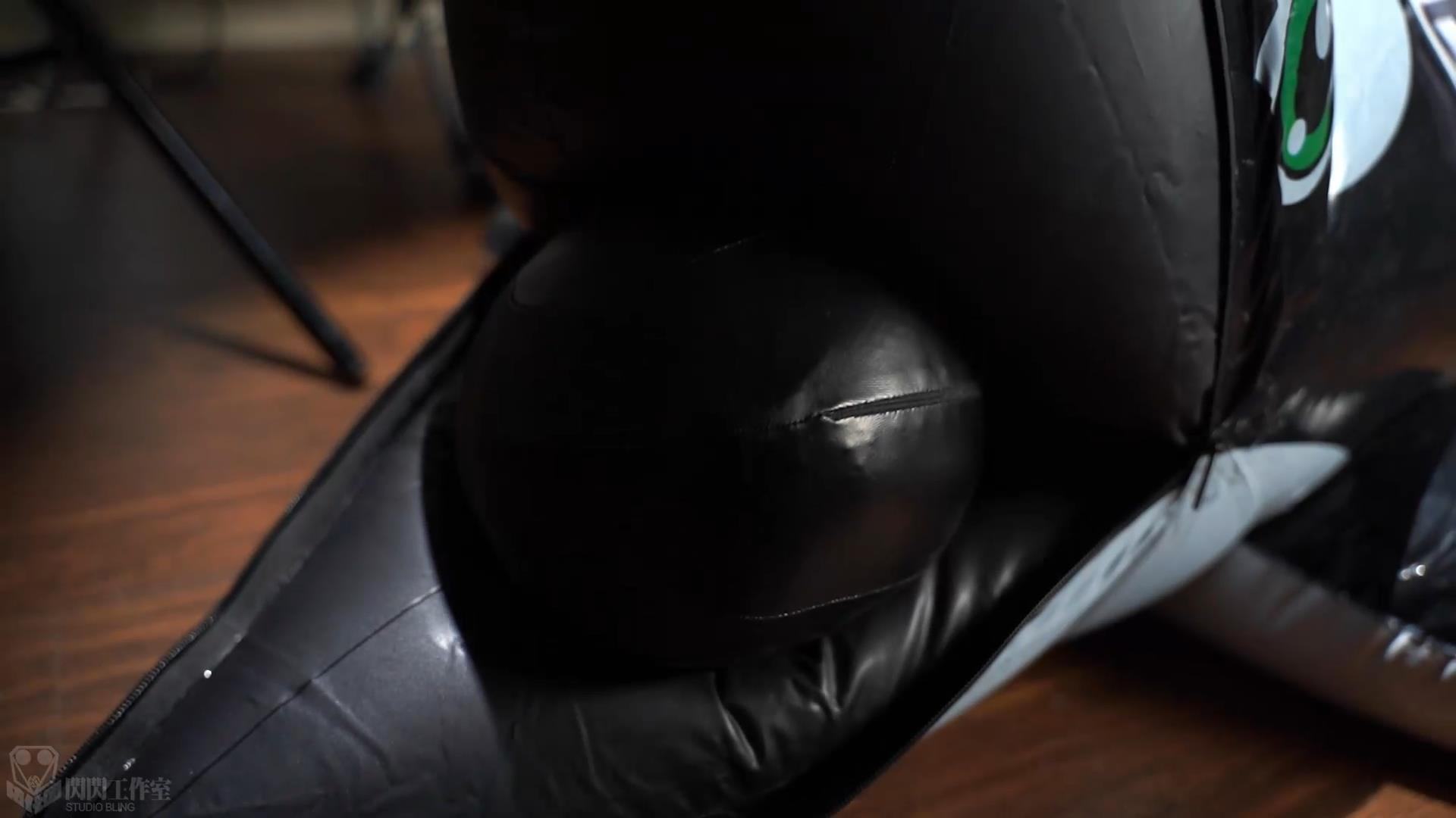 ファスナーを上げると、まず下気室に空気を入れ始め、大出力の空気ポンプを利用して空気を流し込むと、クジラ全体が敷かれ、人は中で少し快適になったはずだ