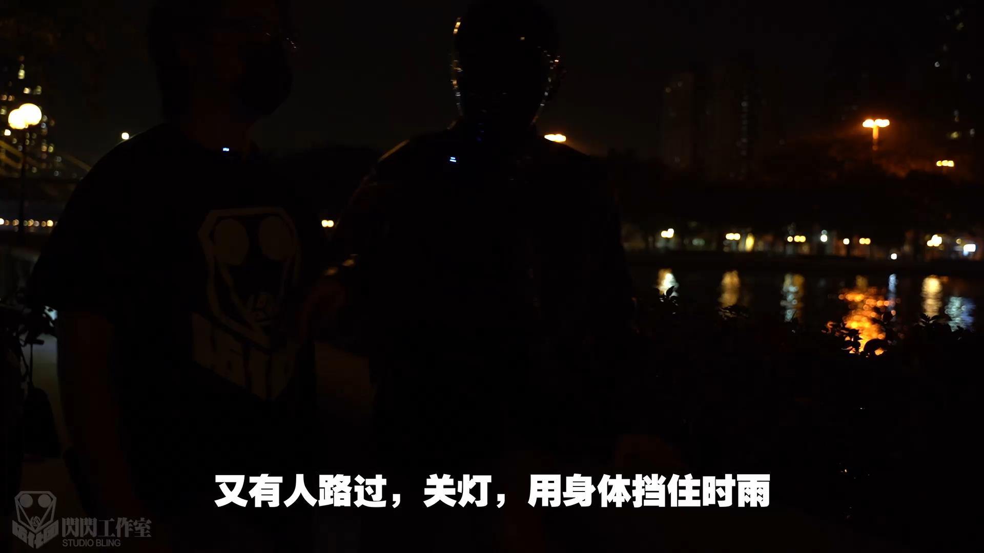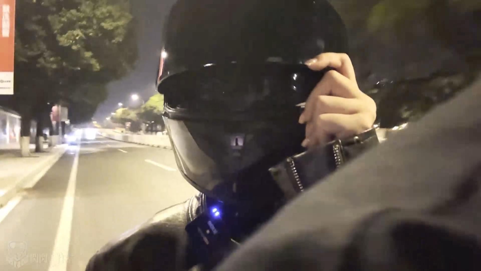 いいやつだ、本当に電気自動車が来て、私は車の明かりが迫ってくるのを見て、すぐに撮影灯を消して、ヘルメットを取ってTOKIMEにかぶる(この緊張しすぎて手当たり次第にカメラも消した)