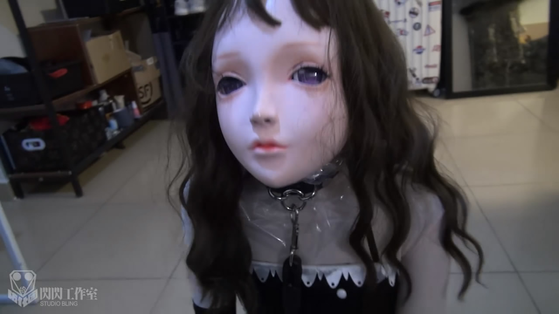 そして、頭皮の下にビニール袋をセットして、また殻をかぶっていて、このようなきれいな人形の下には層がしっかりと覆われています。