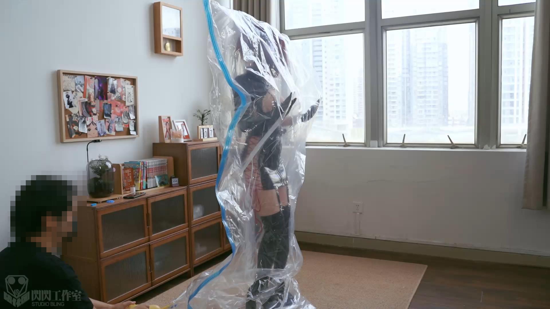 この状態では道具を全部使っていませんが、欲桃に頭の殻を持っていて、真空袋が引き締まると、ピーナッツが開き、看護婦の人形が袋の中でまた立っていられなくなって、酸欠のめまいが彼女を地面に寝かせて、無力にもがいて、手で袋を開けようとしました