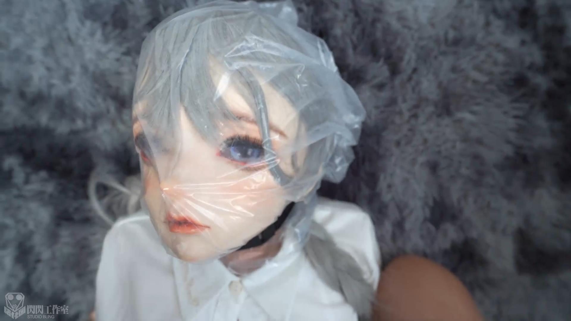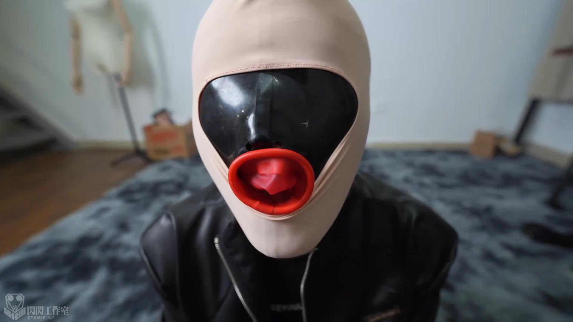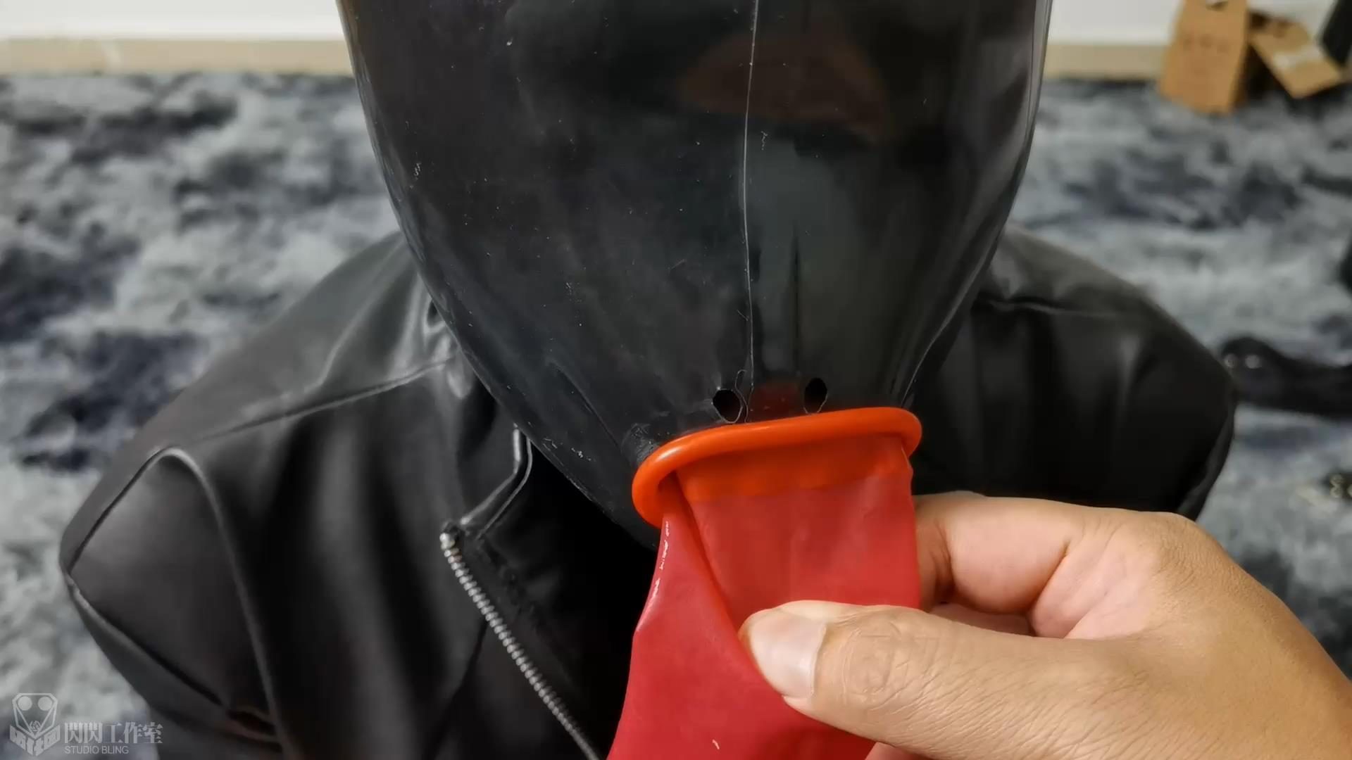 このラテックスヘッドカバーの鼻の穴は口栓の縁によって大部分を押さえつけられ、ヘッドカバーをつけてから鼻を押さえると、極めて微小な呼吸空間しか存在せず、時雨が何度も調整された。皮手袋をしてもうまくできなかったので、私はいらいらして、彼女が調整を続けることを許さなかった