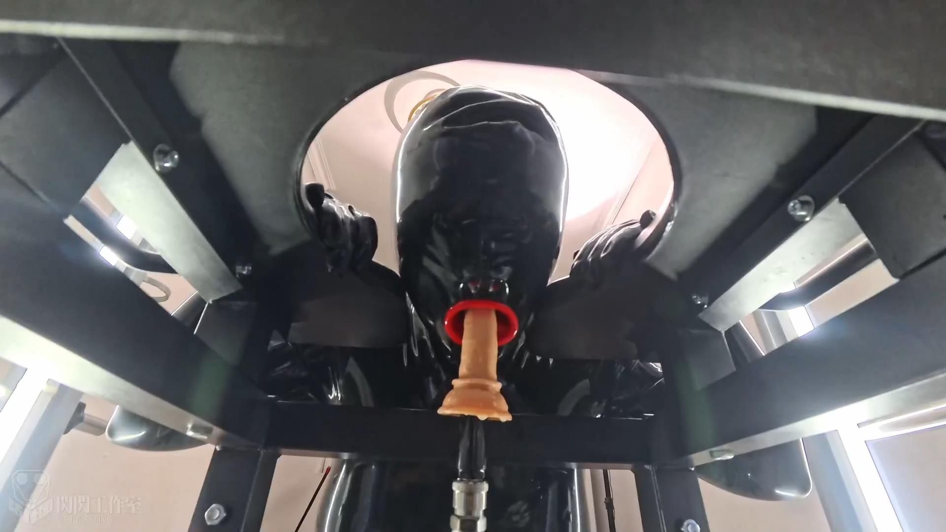 準備が整い、砲機にディルドを取り付けて、全身密封拘束での強制絶頂を開始した。先ほども言ったように、この座り姿勢では凹スリーブがうまく合わなかったので、やむなく凹スリーブを切り開いた。しかし、それでも距離にズレがあり、初期のディルドが干渉されて外れてしまう現象が起きた。そのため、さらに口を切って、新しいラテックスパンツを犠牲にし、ディルドに外力が妨げないようにした。次に振動固定架を取り付け、二重攻撃にした。画面があまりにも衝撃的だった。