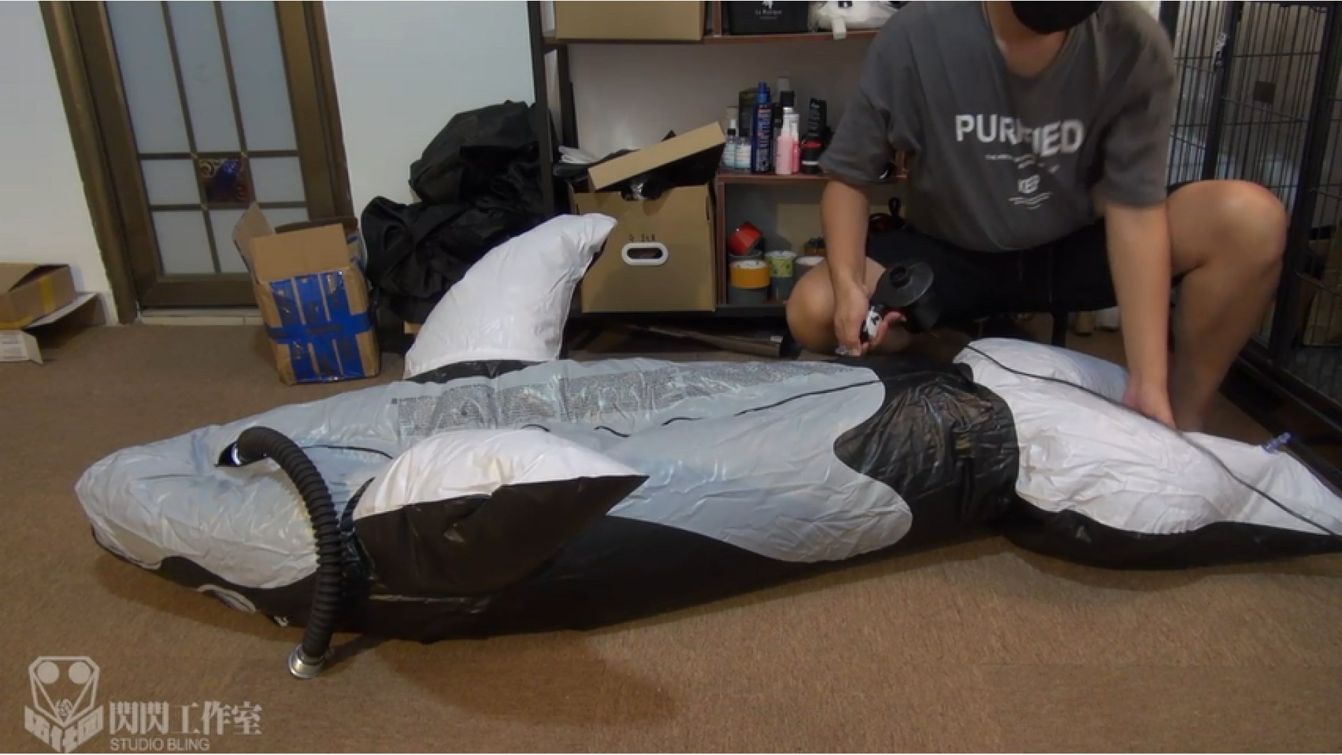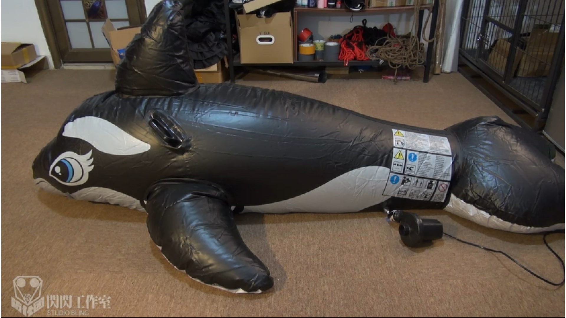 インフレータブル鯨版第2号。 これまでのクジラの改良により、今度はより丈夫です。 内部の人にもっと大きなプレッシャーをかける。 尾も動くことができます。