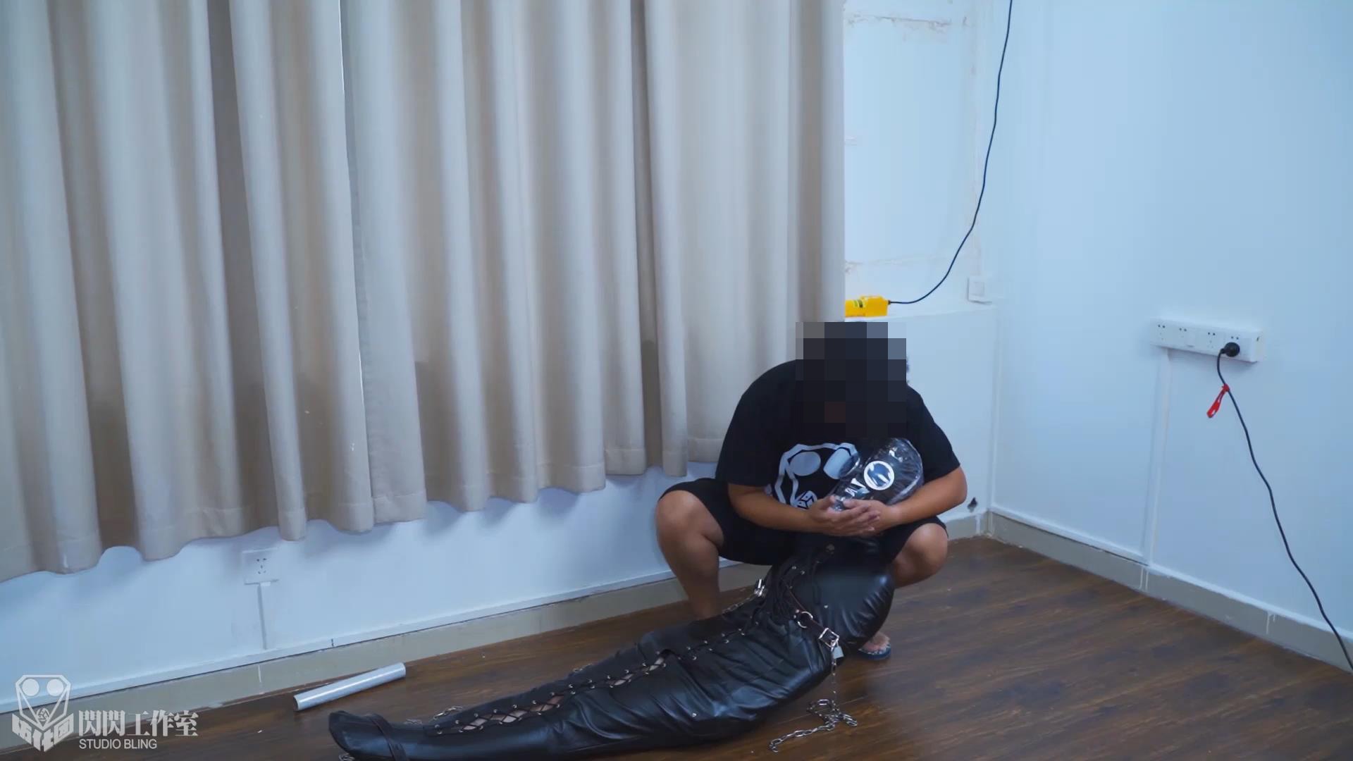 JKが防毒マスクを着け 緊縛された状態で真空スリーピングバッグに挿入される