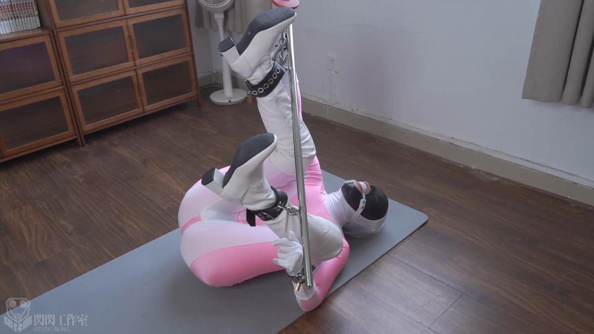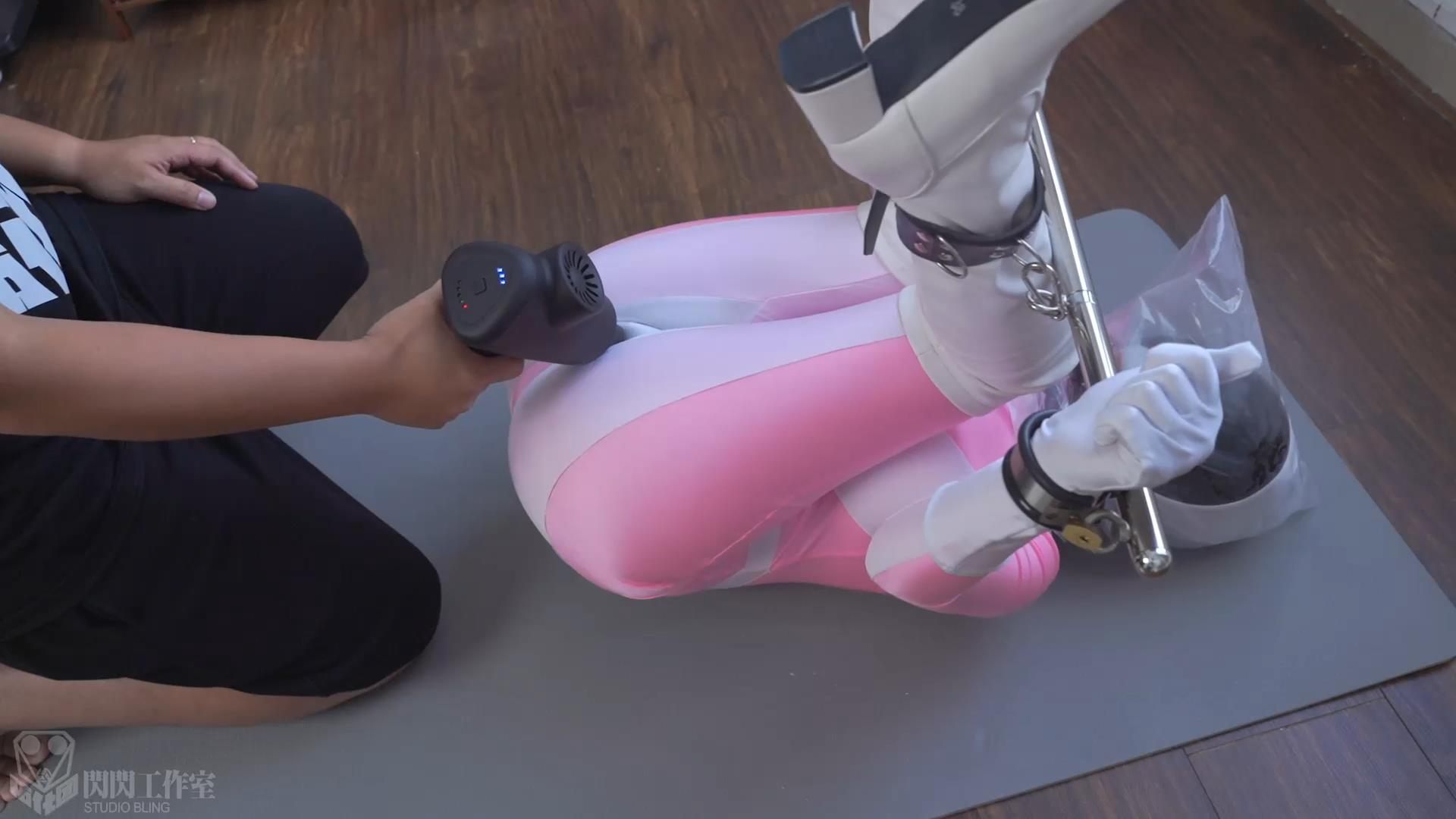 この開脚動作は振動道具の直刺に適しており、雨戦士は振動で体が維持できず、手のサスペンションで支えられている