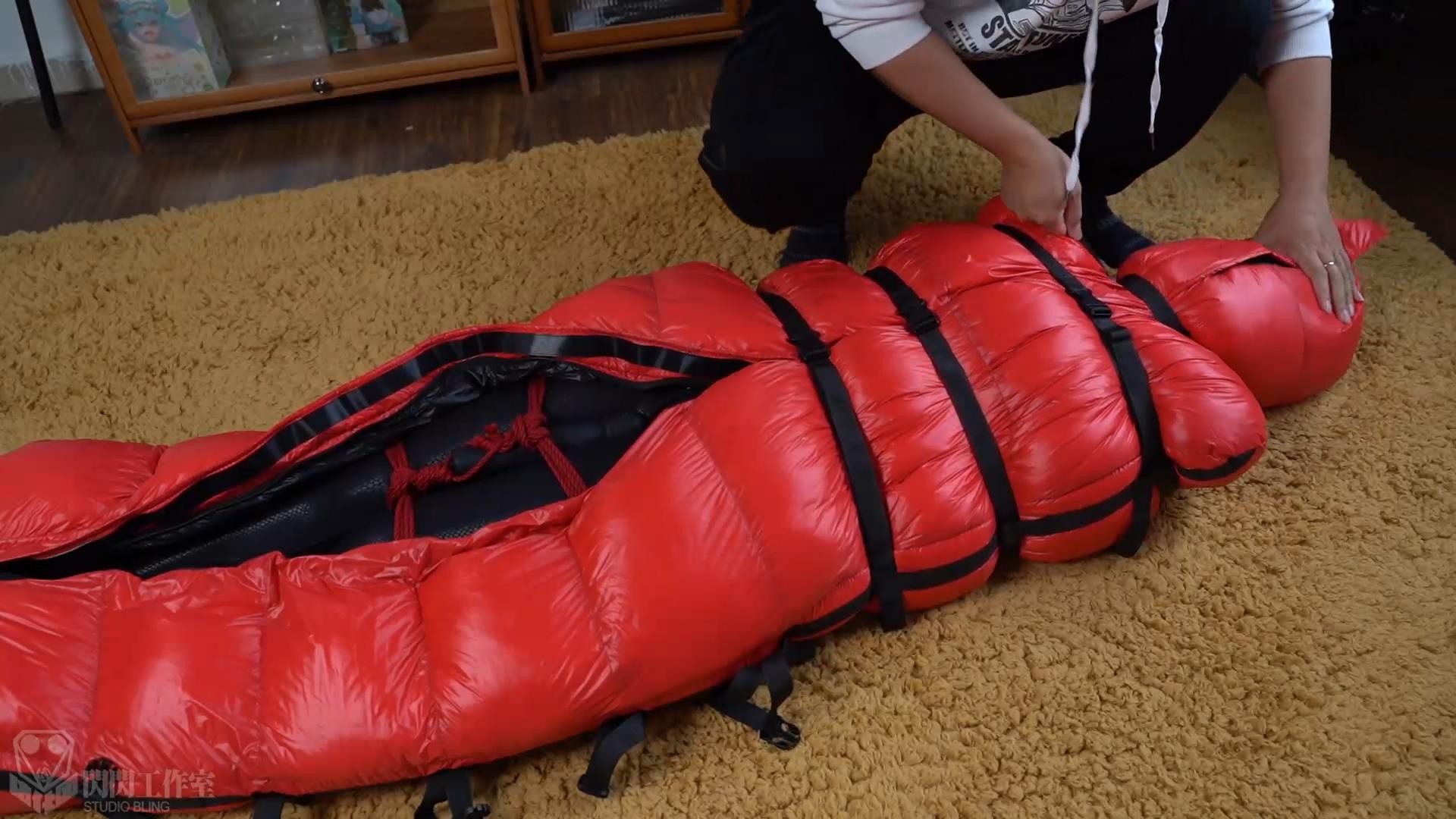 真空袋の中の羽毛拘束寝袋