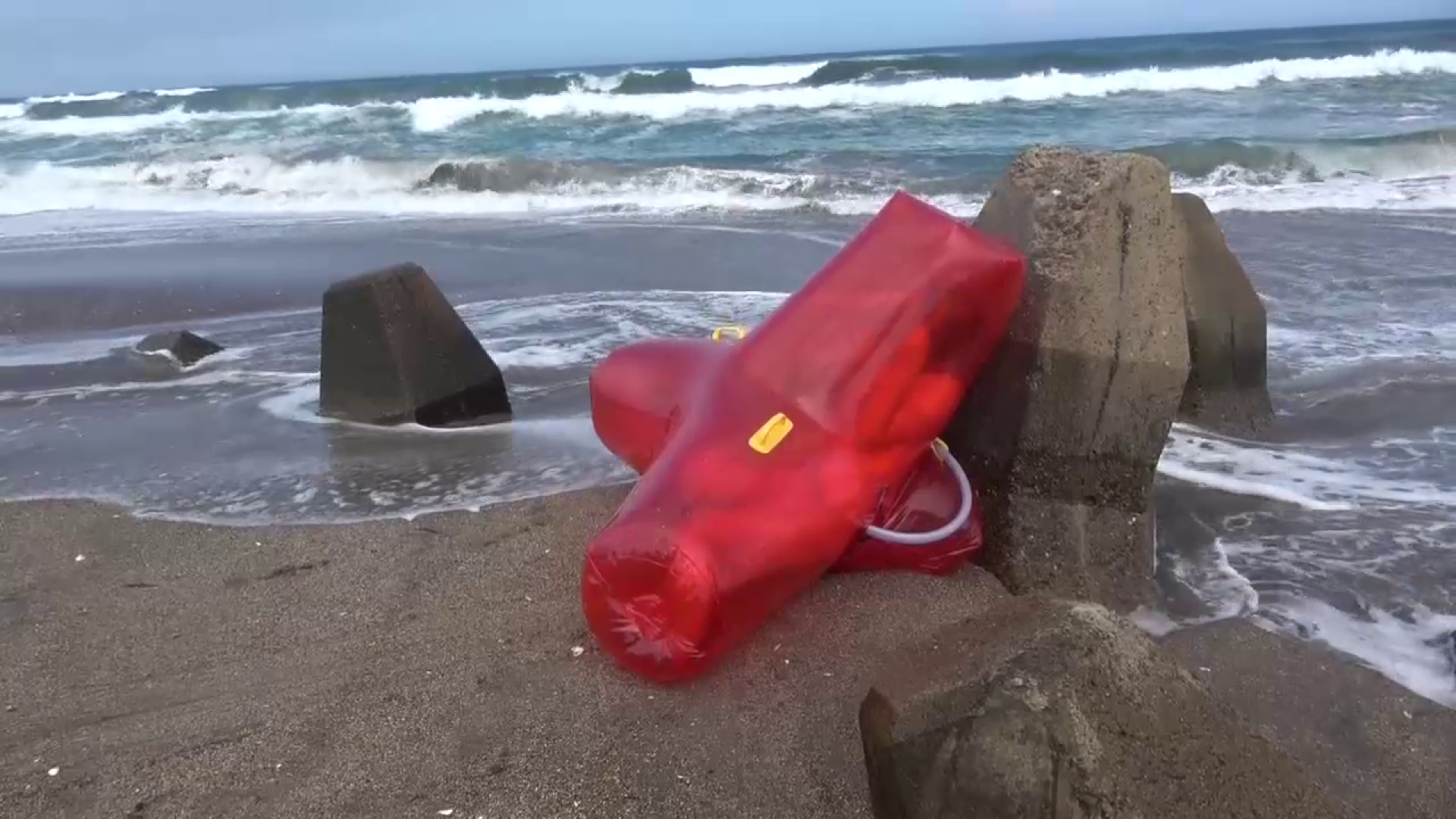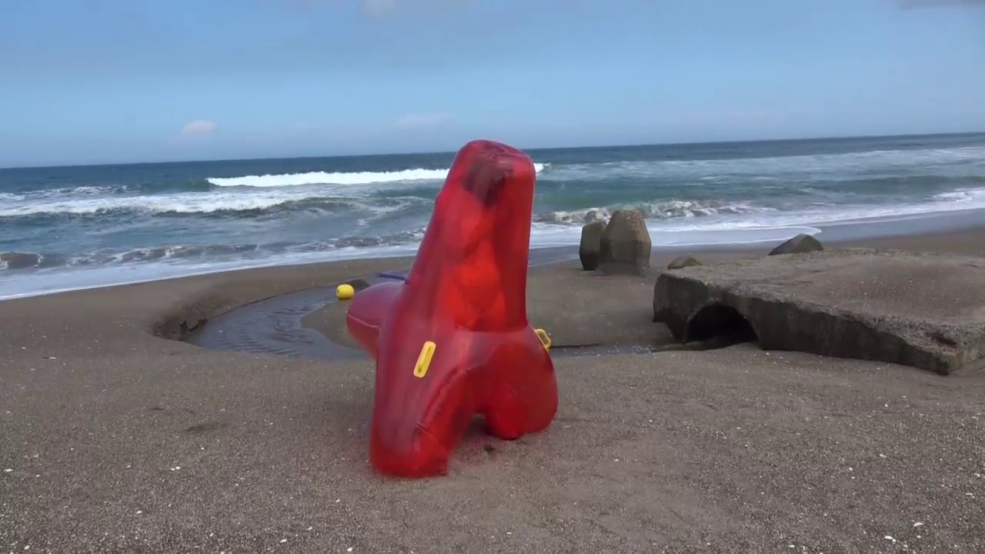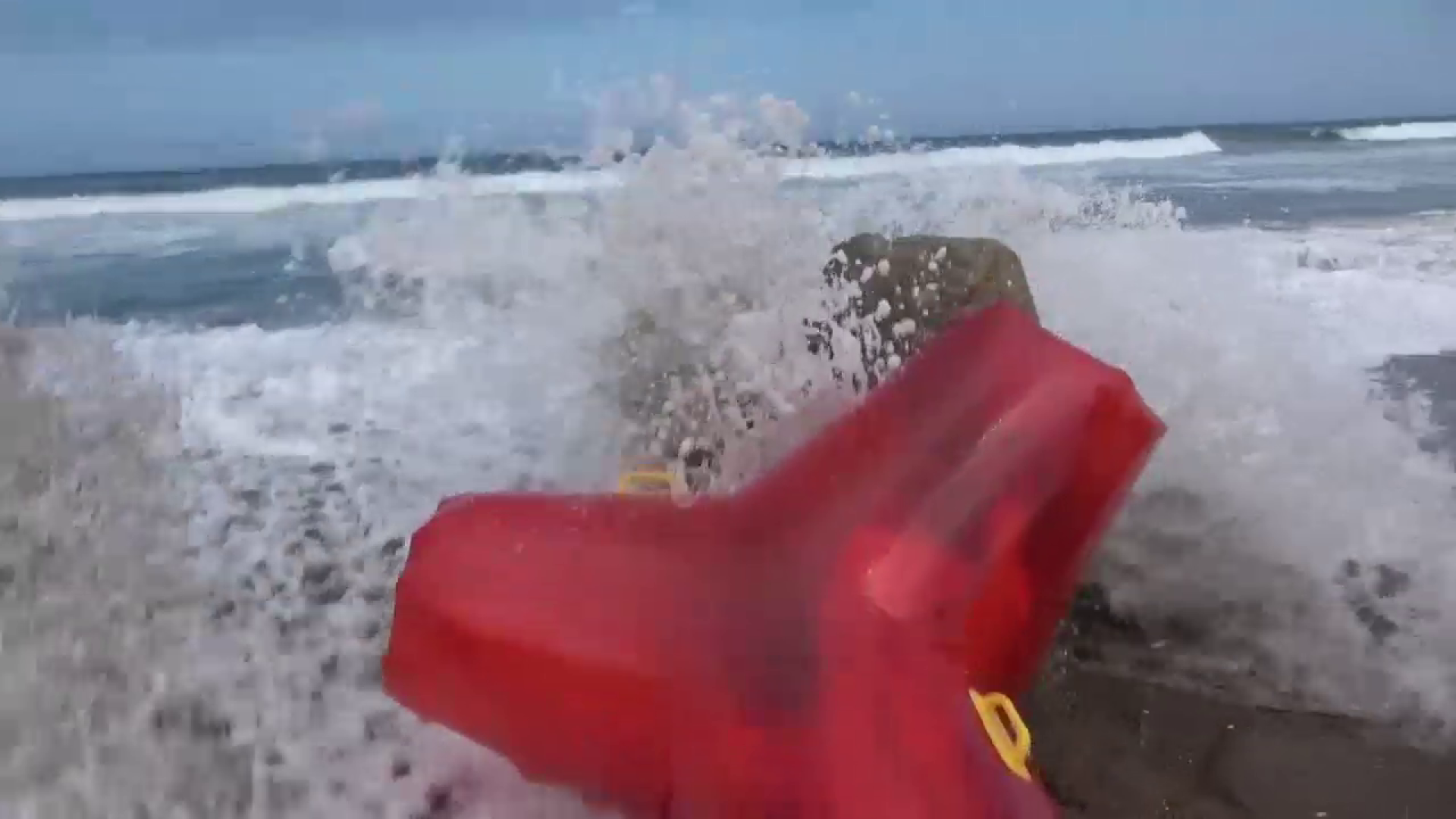 この日は海が荒れていて波がフロートテトラポッドを勢いよく襲います。