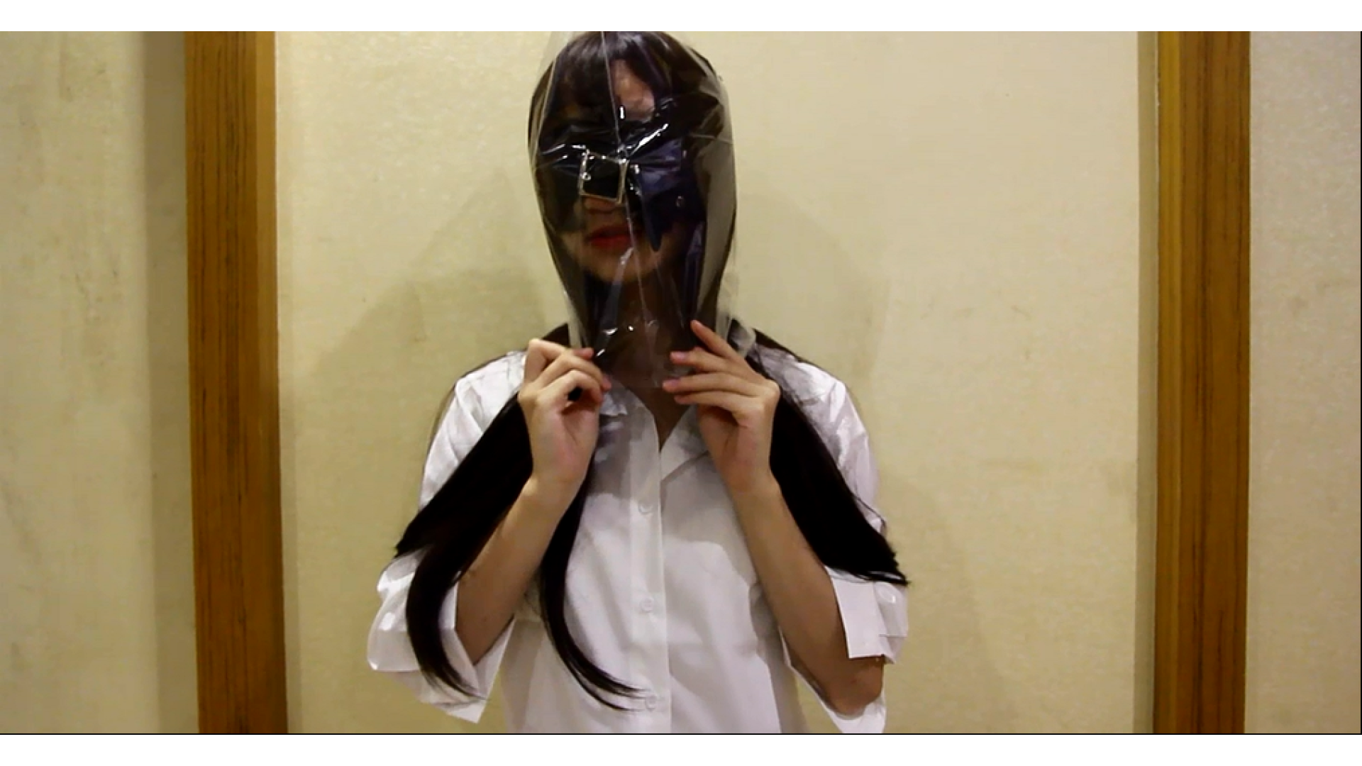 今度は、バニーに最初に自己ビニール袋をかぶって顔に押し付け。 彼女はもはやそれを取ることができなくなるまで、ビニール袋の中の空気を本当によく再呼吸させた。