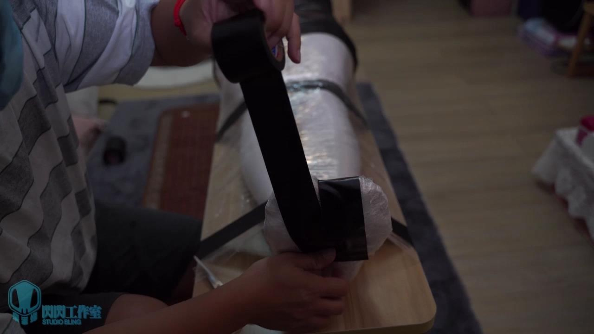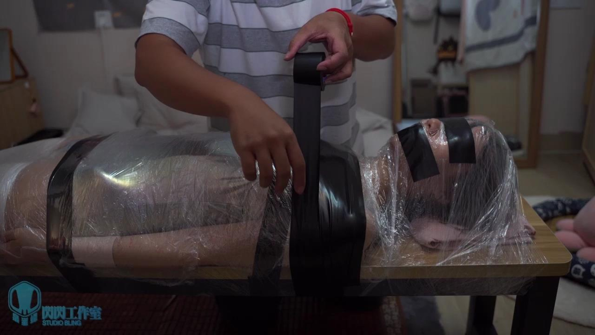 今回は、バニーの腕と脚の周りにテープを入れてみます。 梱包した後、彼女はミイラ人形のように見える ..