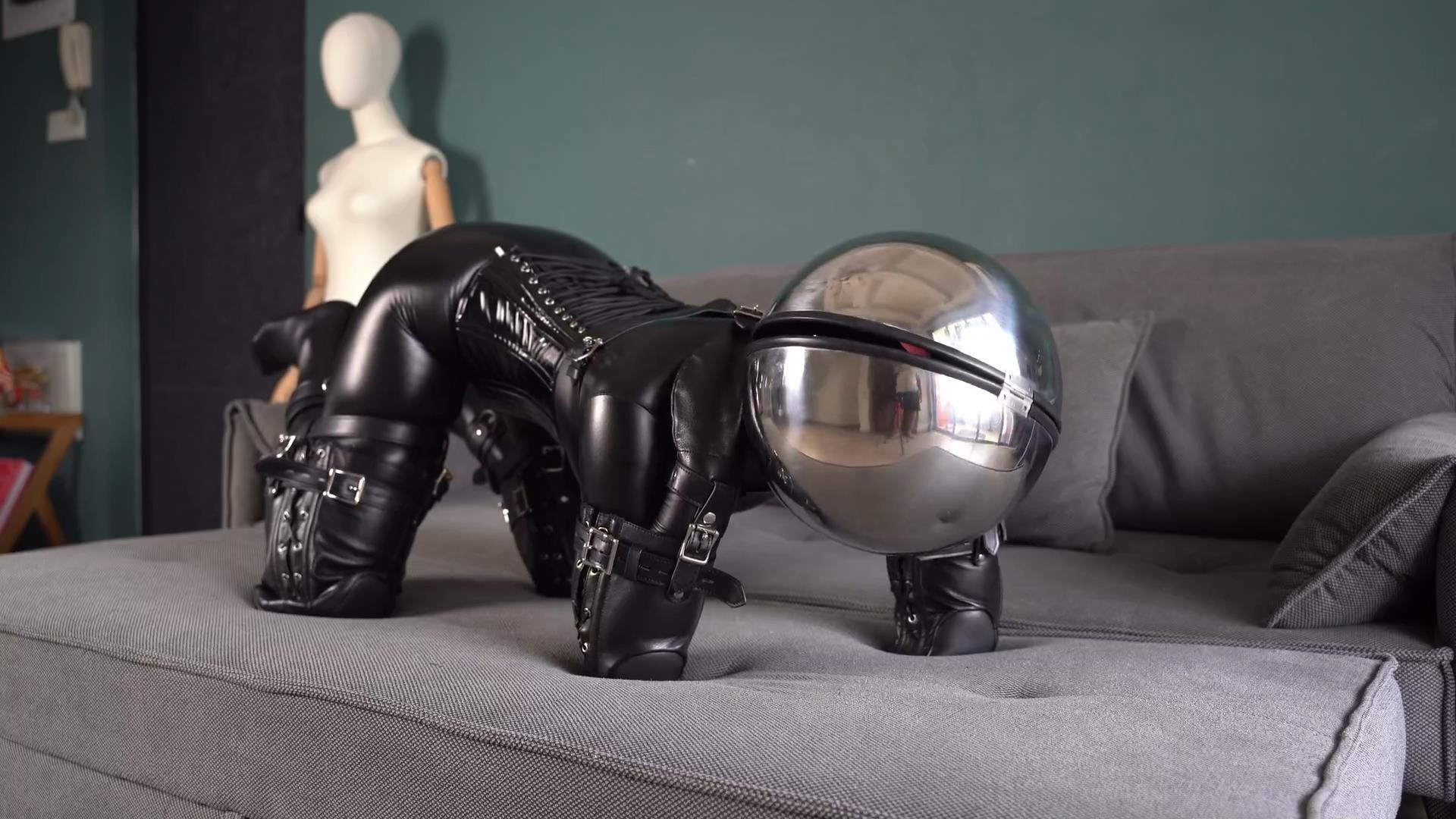 最近よく夜更かししてるから、最初に金属製のヘッドケージを使った罰を加えた。シリコン製の犬ヘッドマスクはヘッドケージに無理やり押し込まれ、内側の壁全体がTOKIMEの顔にピッタリ張り付いて、呼吸のスペースはほとんど残らなかった。