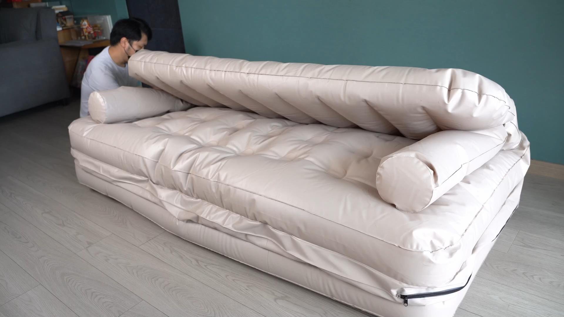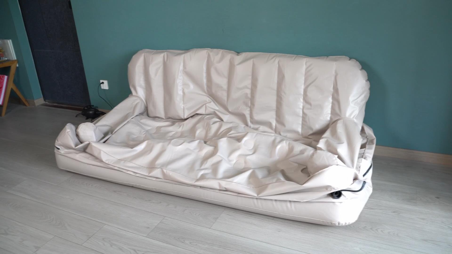 新しく買った膨張式拘束ソファが届いた。TOKIMEは中でムシムシするけど寝るのは快適だった。でも、私がその上に座ると、圧迫感が一気に増して、彼女は爆発しそうだと感じたみたい。