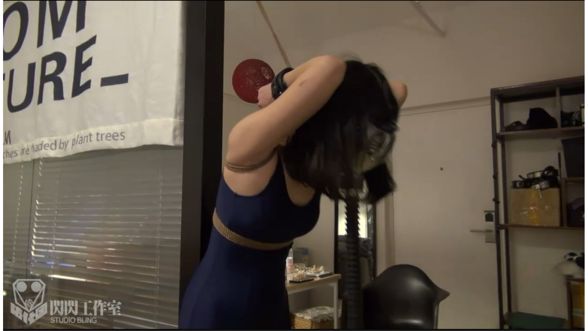 ミャオの体は縄の束縛の下でひねり、回っている。