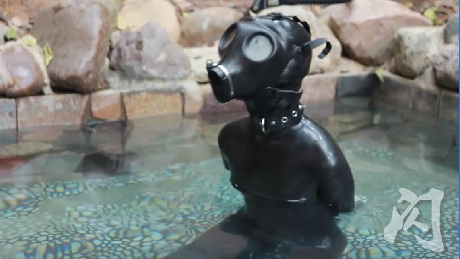 温泉の時です。 私は彼女を温泉に降ろし、彼女にガスマスクをかける。 私は後で水を吸い始めることができるようにチューブを接続します。
