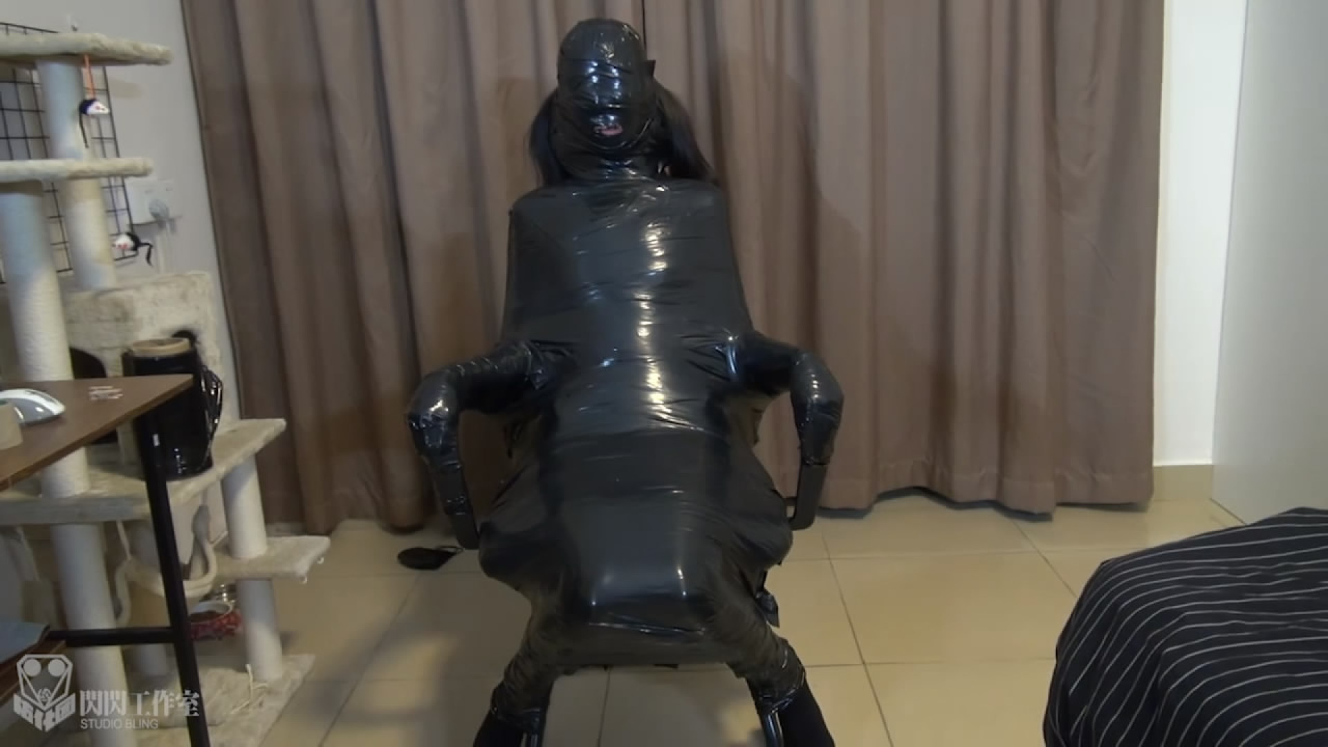 重さが膜に包まれ、体は背中に縛られ、太ももは座布団に固定され、足は足に縛り、両手は手すりに包まれ、さらに頭を枕に縛る