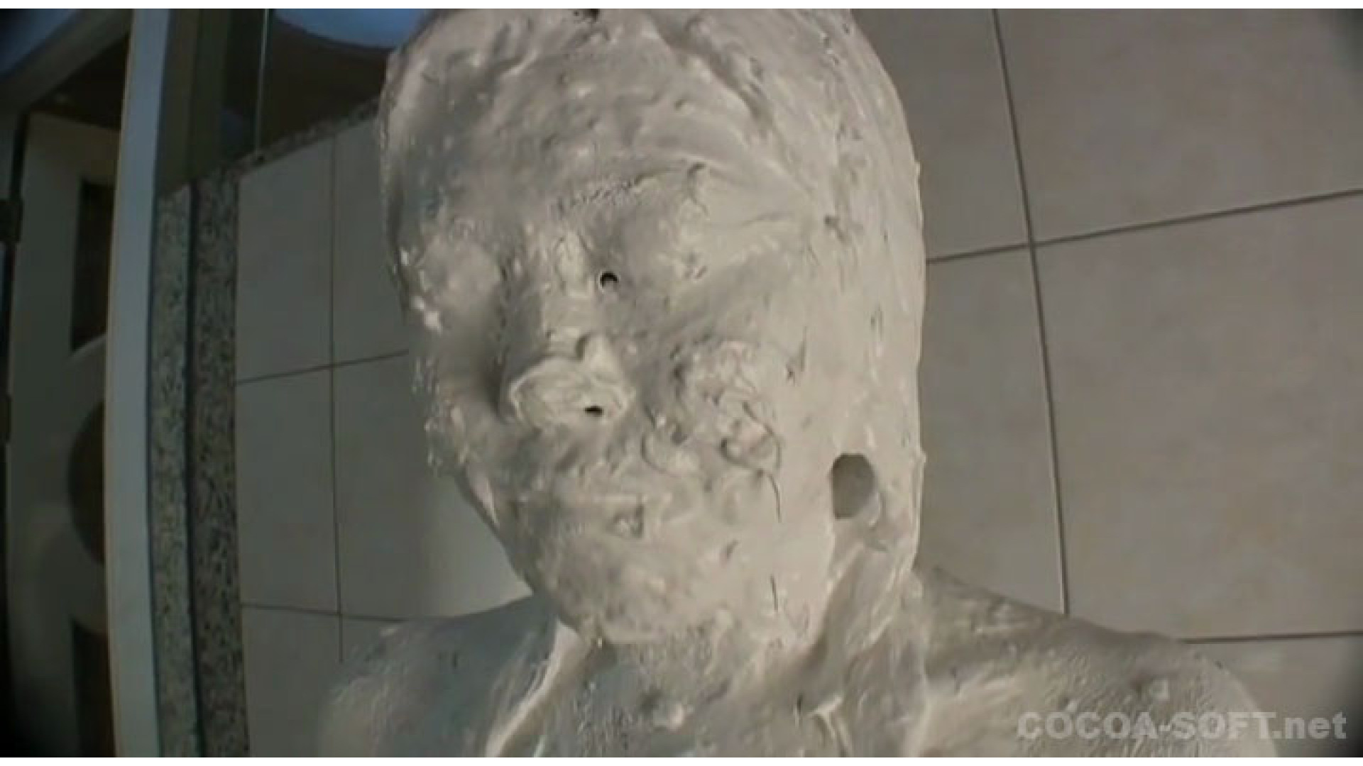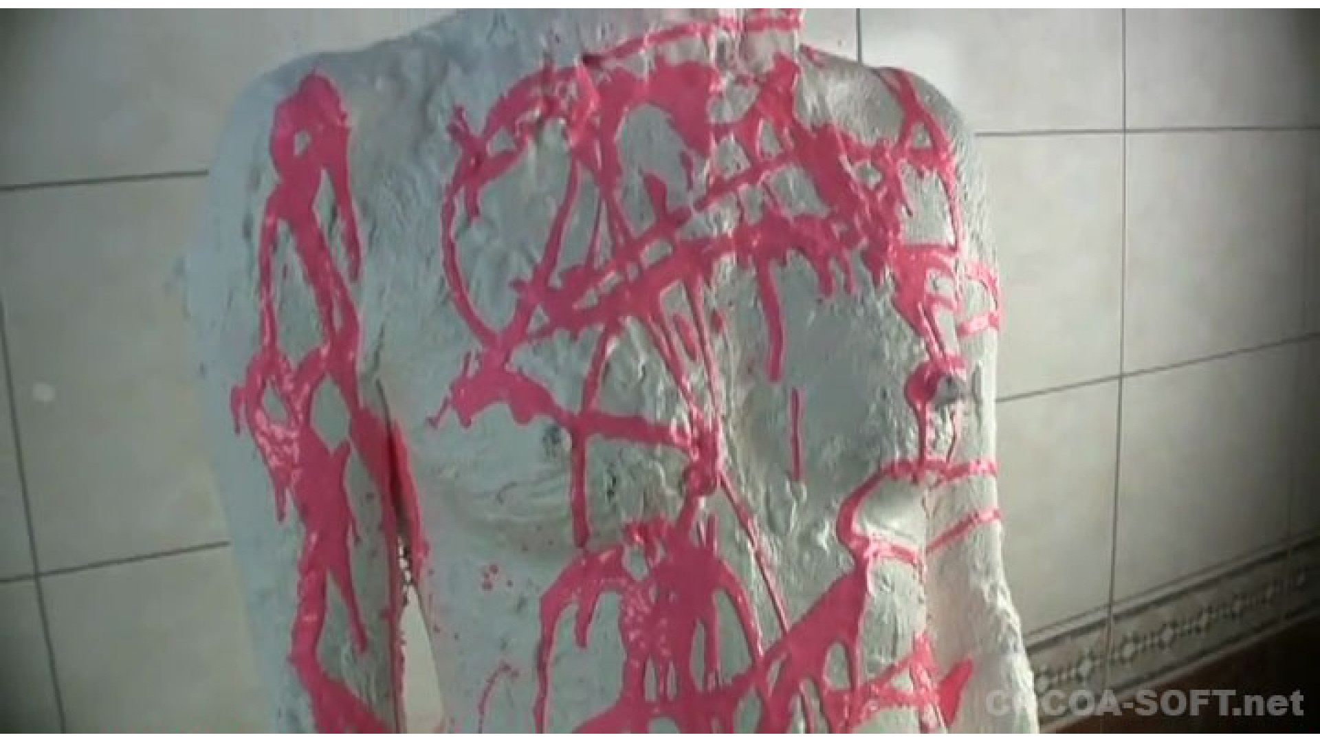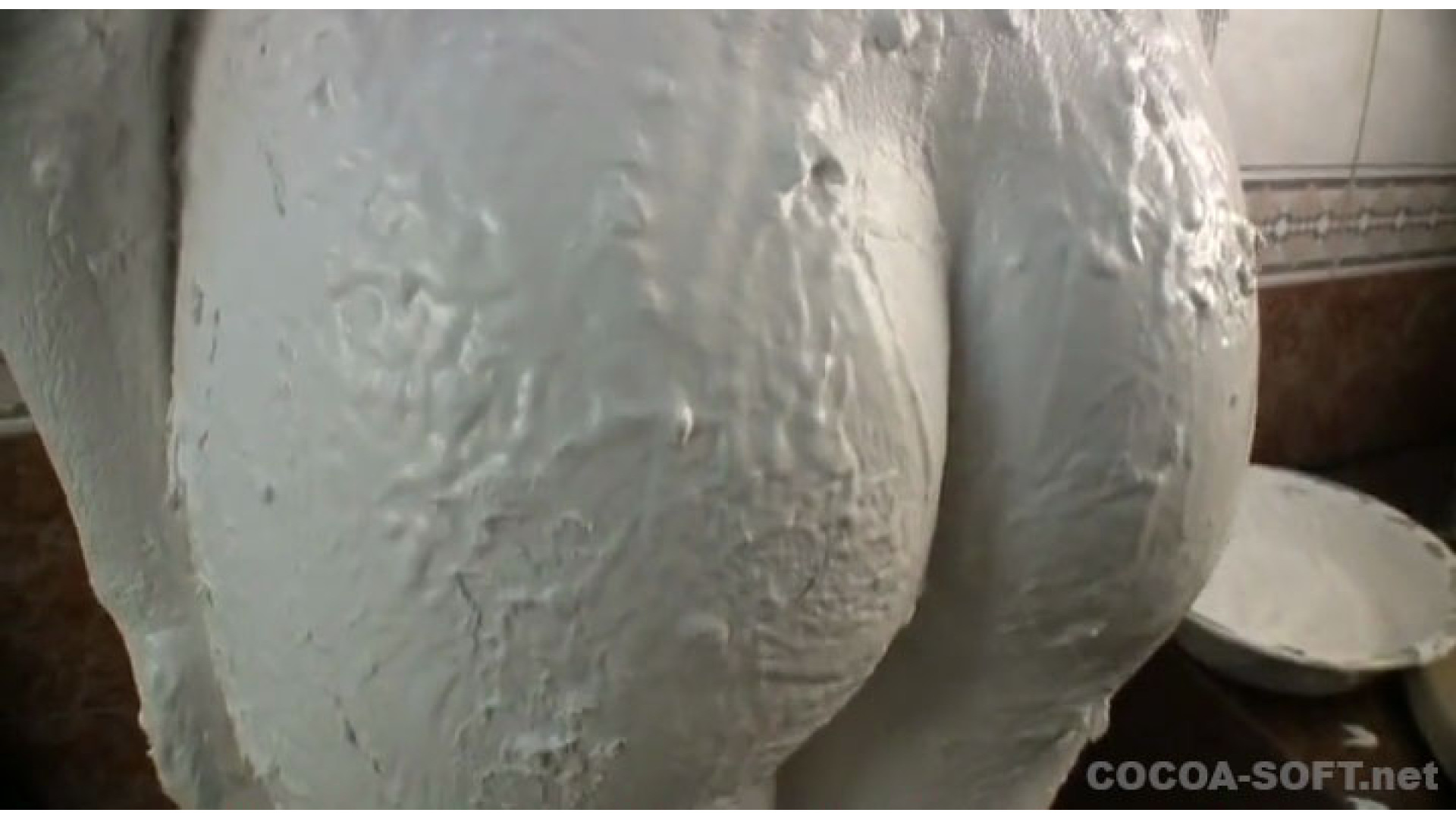 紙粘土に白色絵の具を混ぜた物を体に塗っていきます。