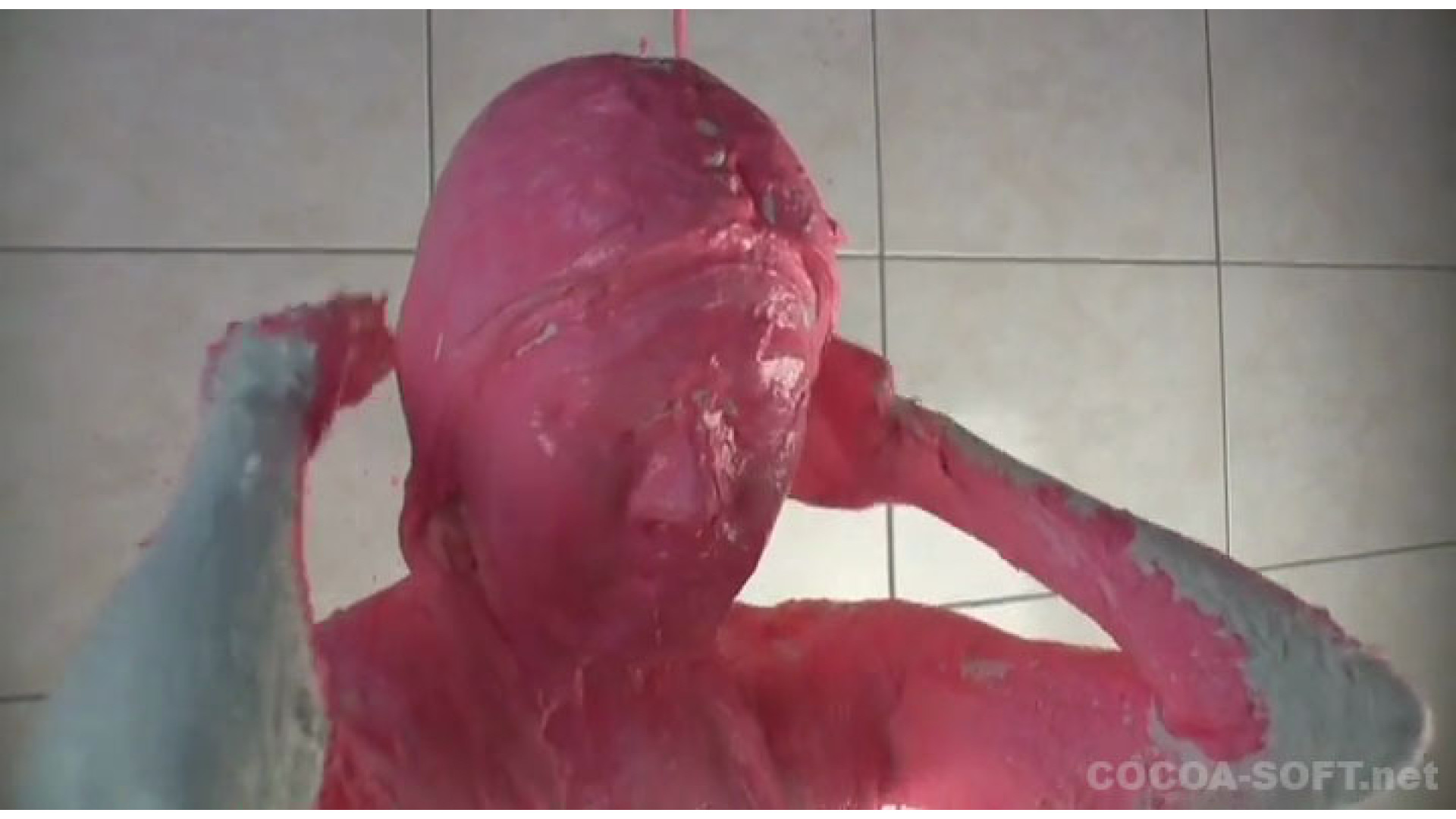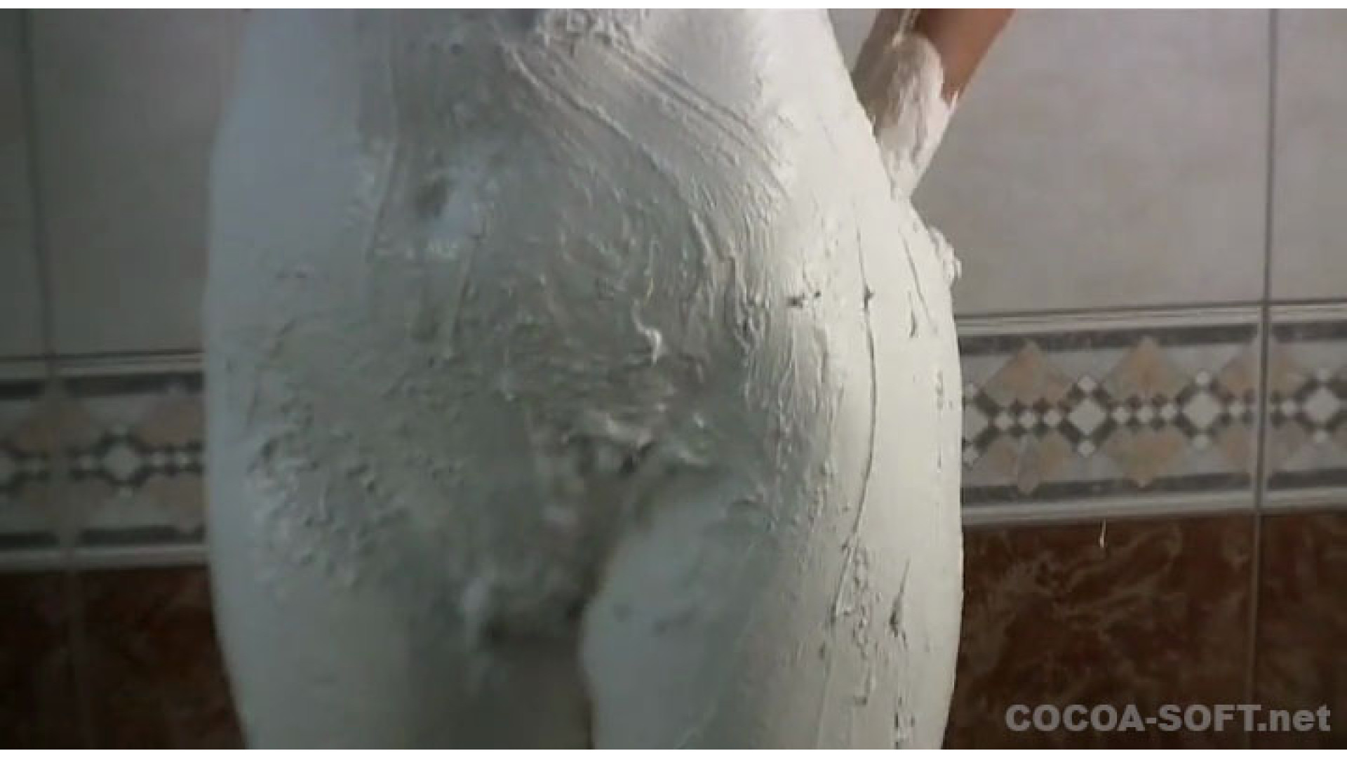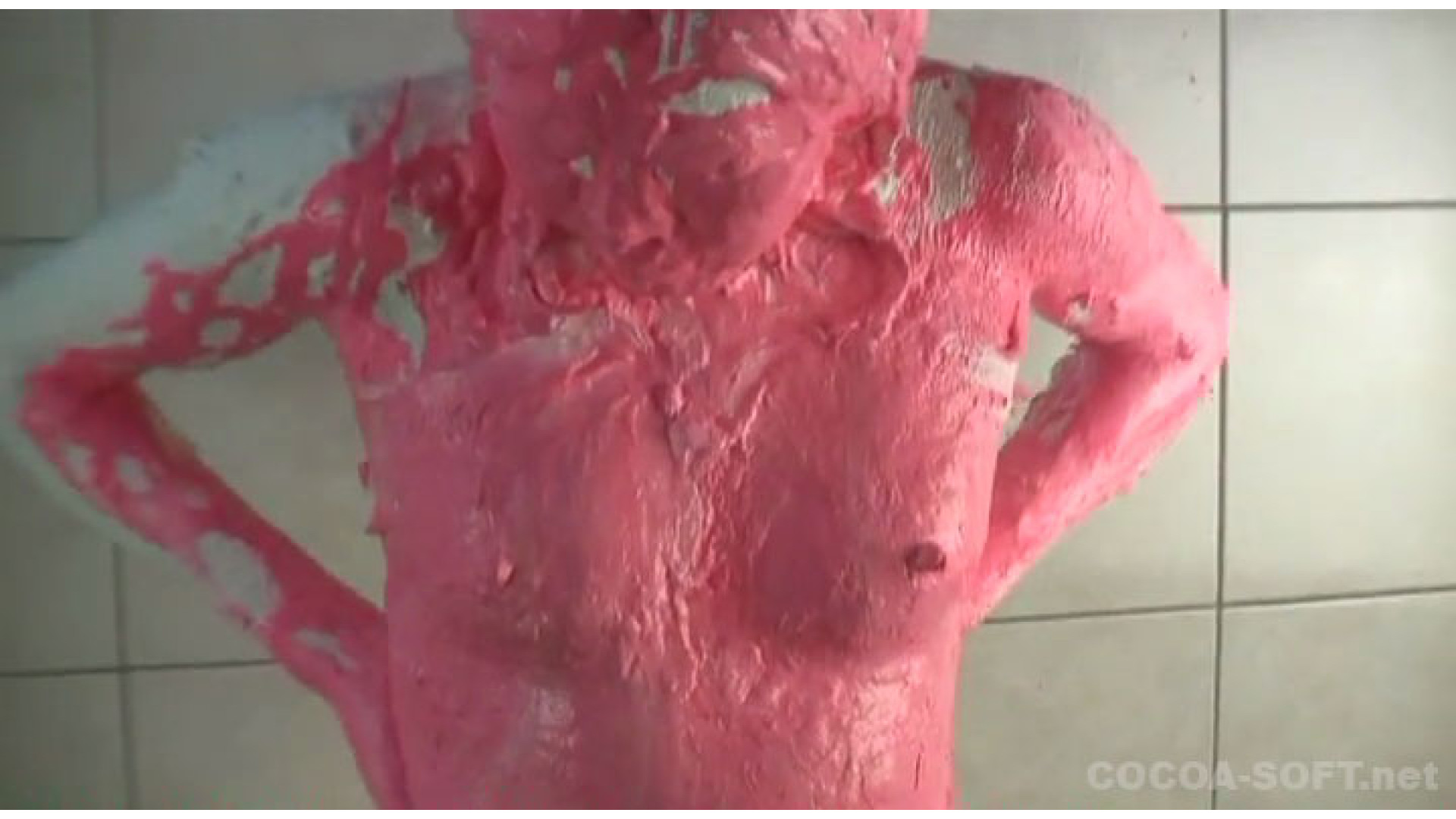 紙粘土に白色絵の具を混ぜた物を体に塗っていきます。