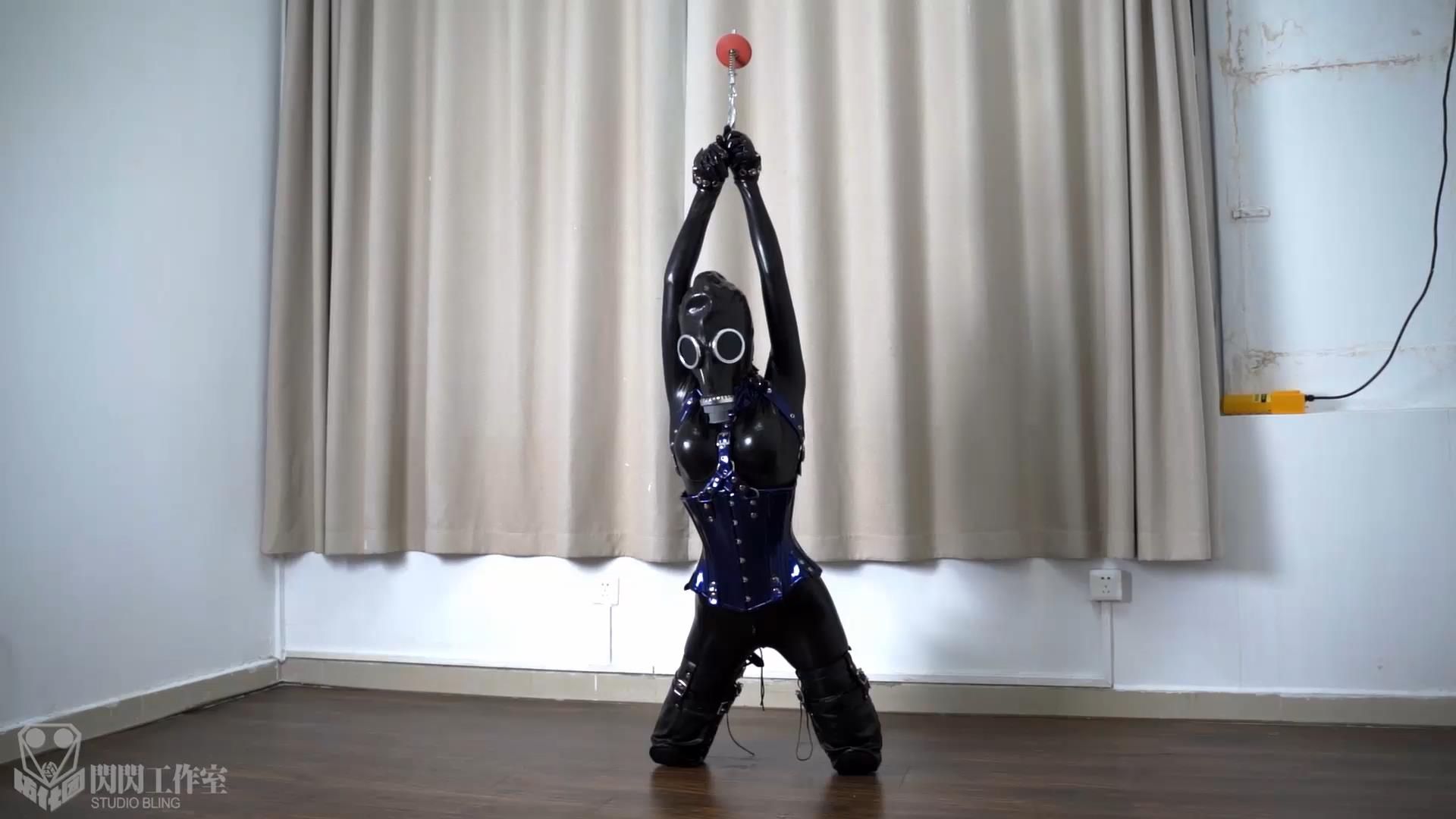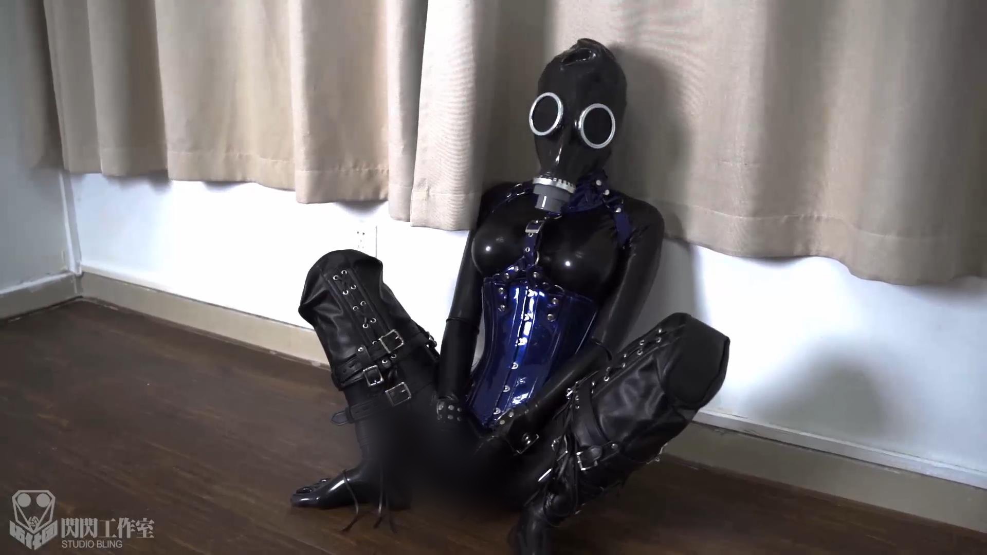 ラテックス + レザー + ガス マスク 三層で覆われる 革拘束衣掛かる窒息水刑