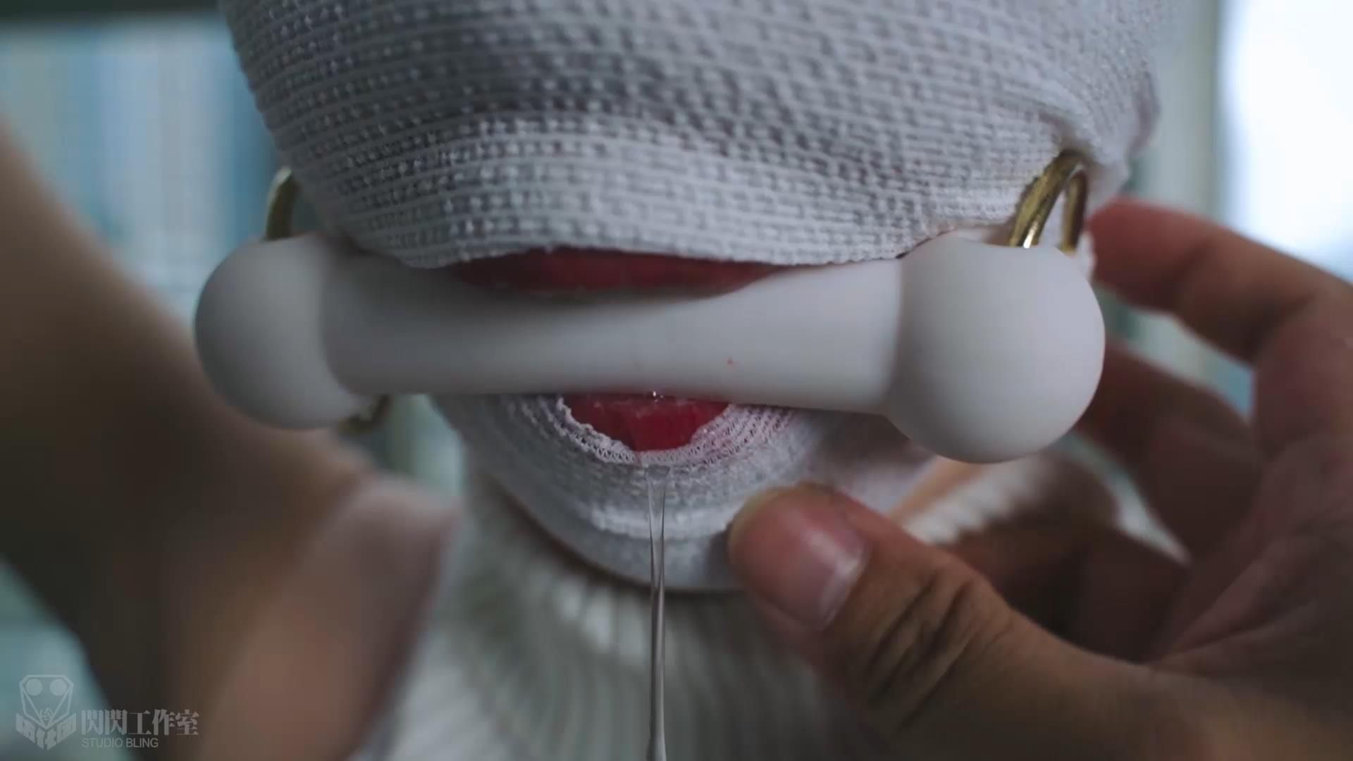 シリコンの顔にシリコンの胸を合わせると、まるで本物の人形のように、同じように縛魂衣に拘束されているが、今回は両手を縛魂衣の背後の拘束帯に拘束し、両足も二つ折りにして拘束し、鉄の鎖で持ち上げて固定し、マットにひざまずいた