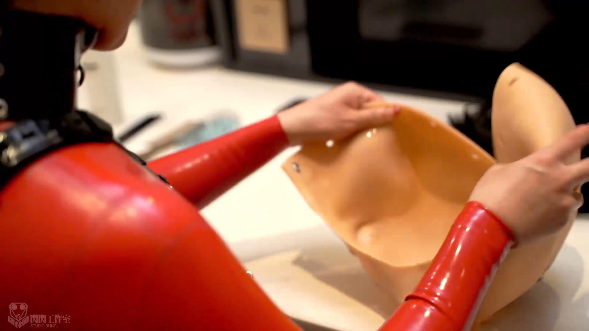 欲桃のマスクにラテックスマスクをつけるのは簡単な操作ではありません。2つの材質は互いに摩擦が激しく、少しずつはめ込まなければなりません