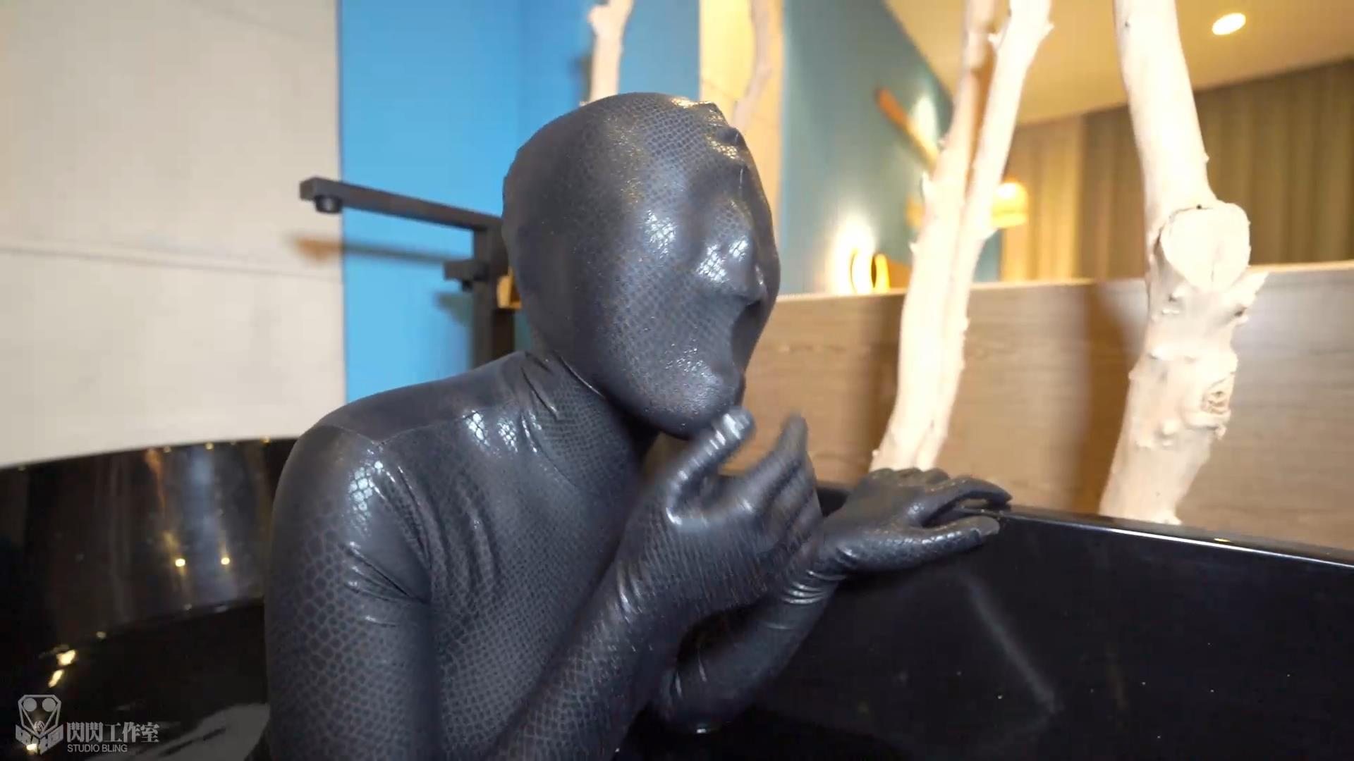 しばらく遊んだ後は時雨を連れてホテルに戻り、まだ意を尽くしていない私は彼女がシャワーを浴びた後に黒マンバZentaiを取り出して着せる