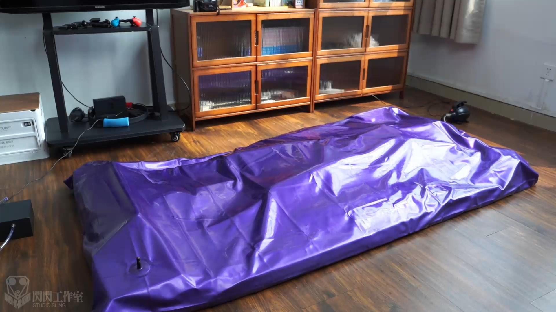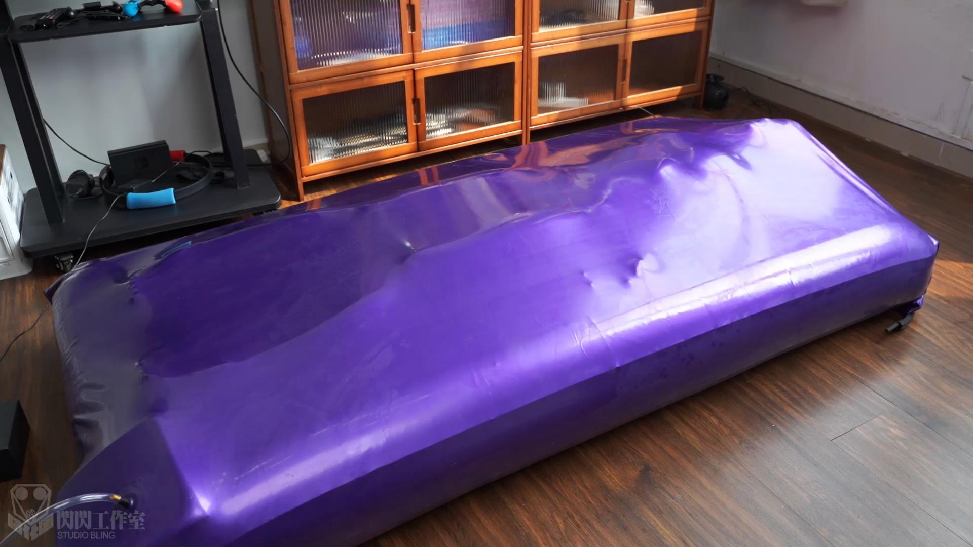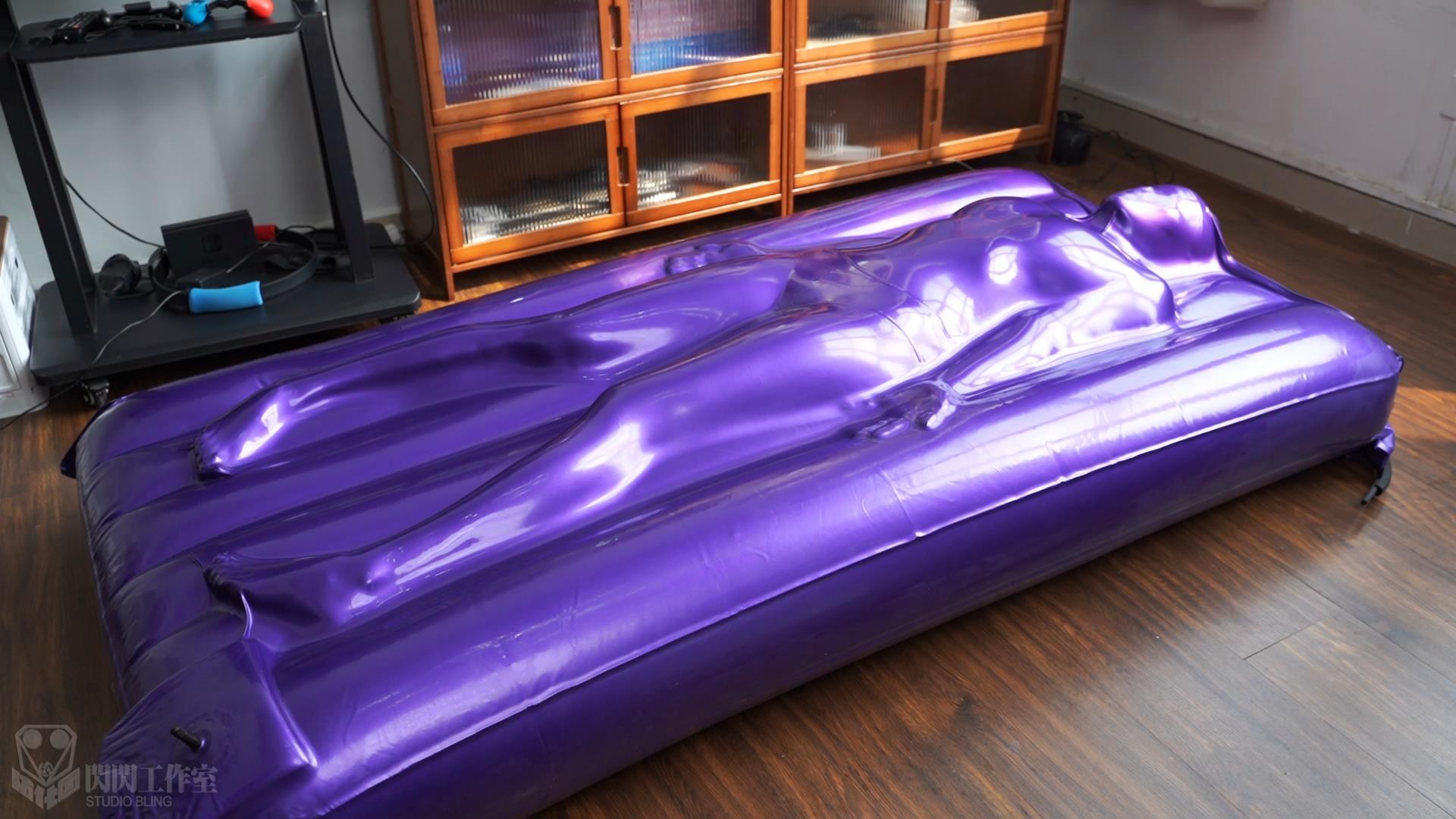 マットレスの空気が入るにつれて、紫色の平面全体がすぐに立体になり、マットレスがベッドのほとんどの空間を占めているため、ラテックスのベッドカバーは中の人の表面にしっかりと覆われている