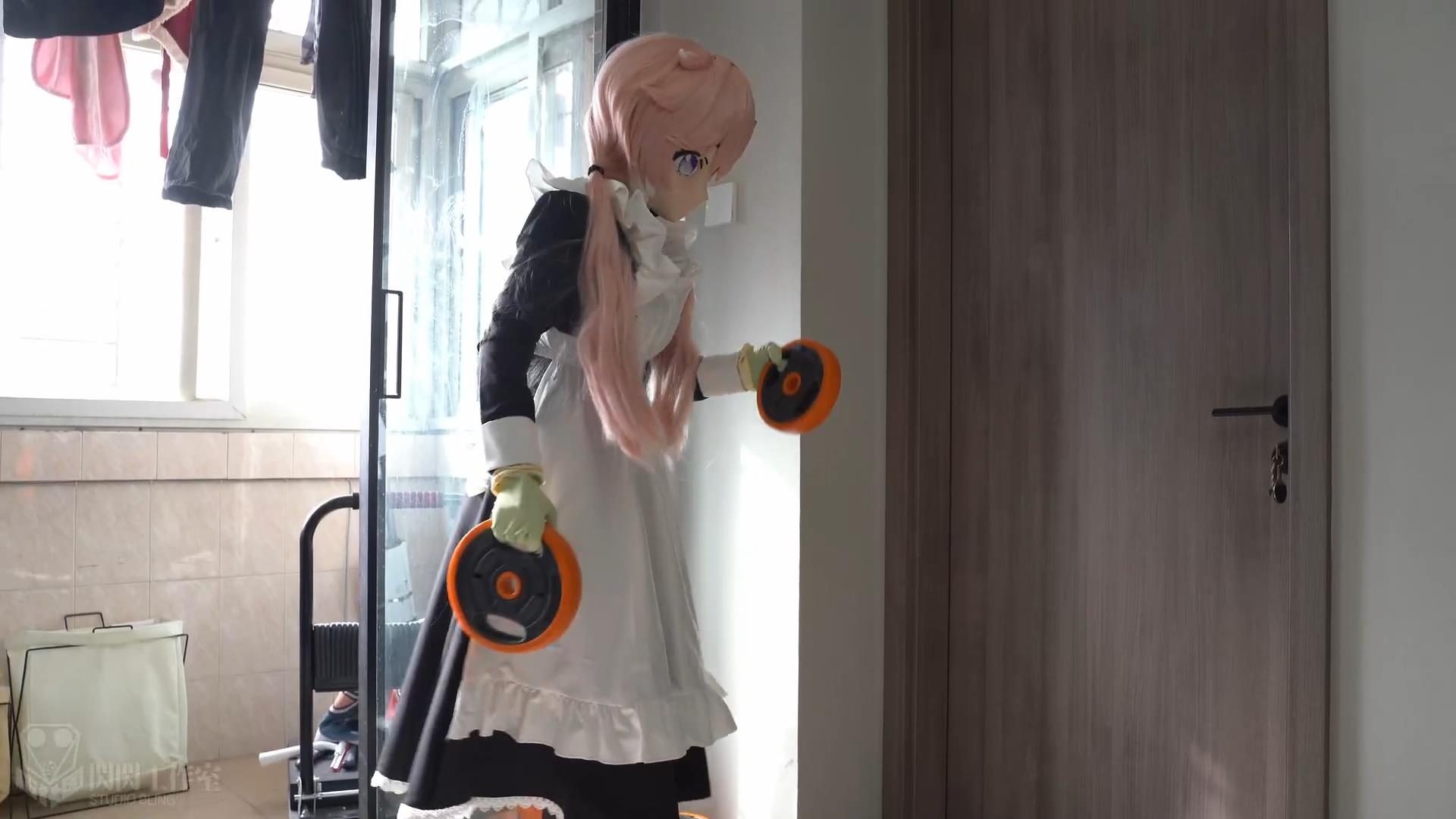 目の前には袋の中にセットされ、メイドの着ぐるみを着た精巧な人形が静かに立っている