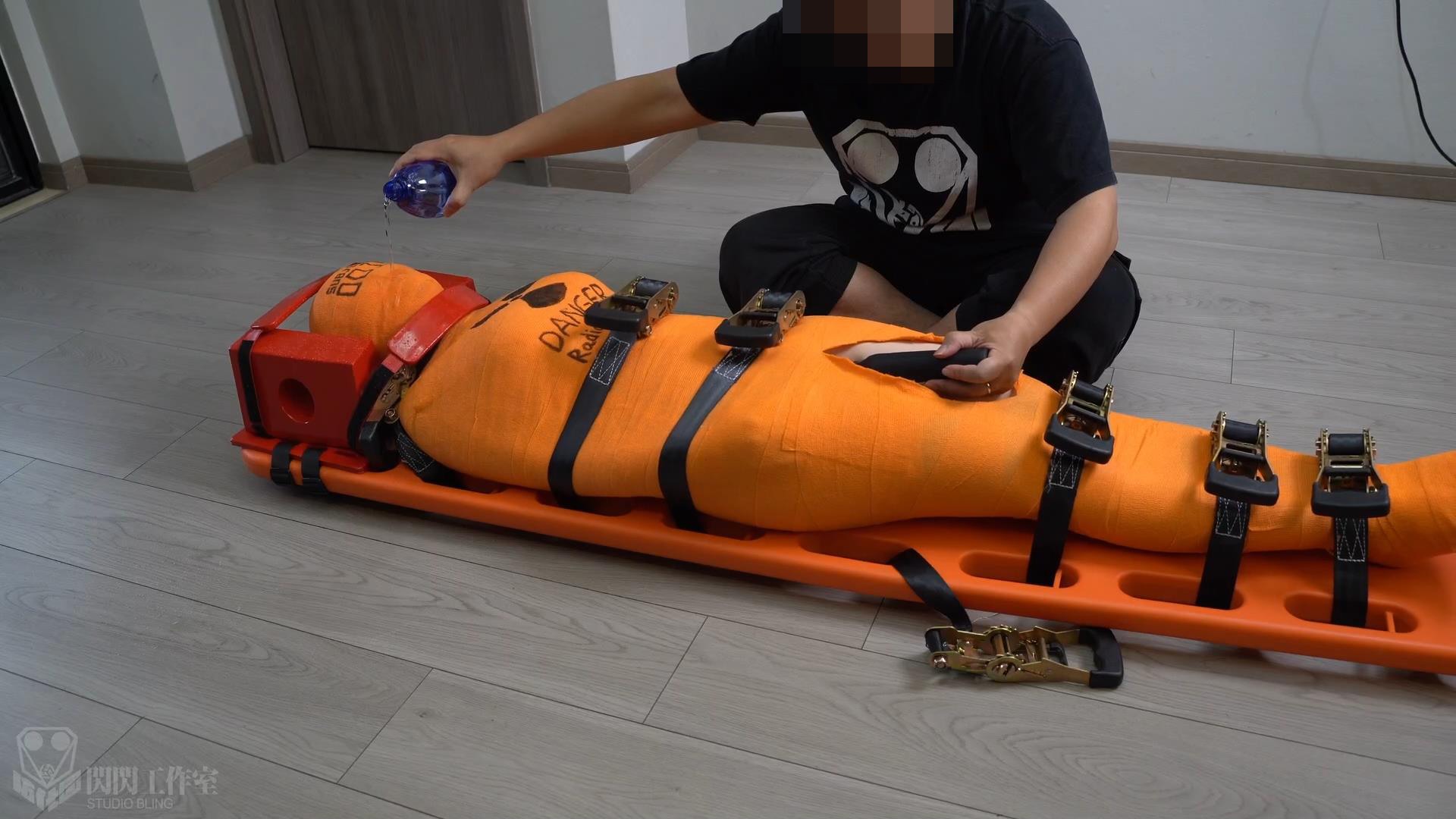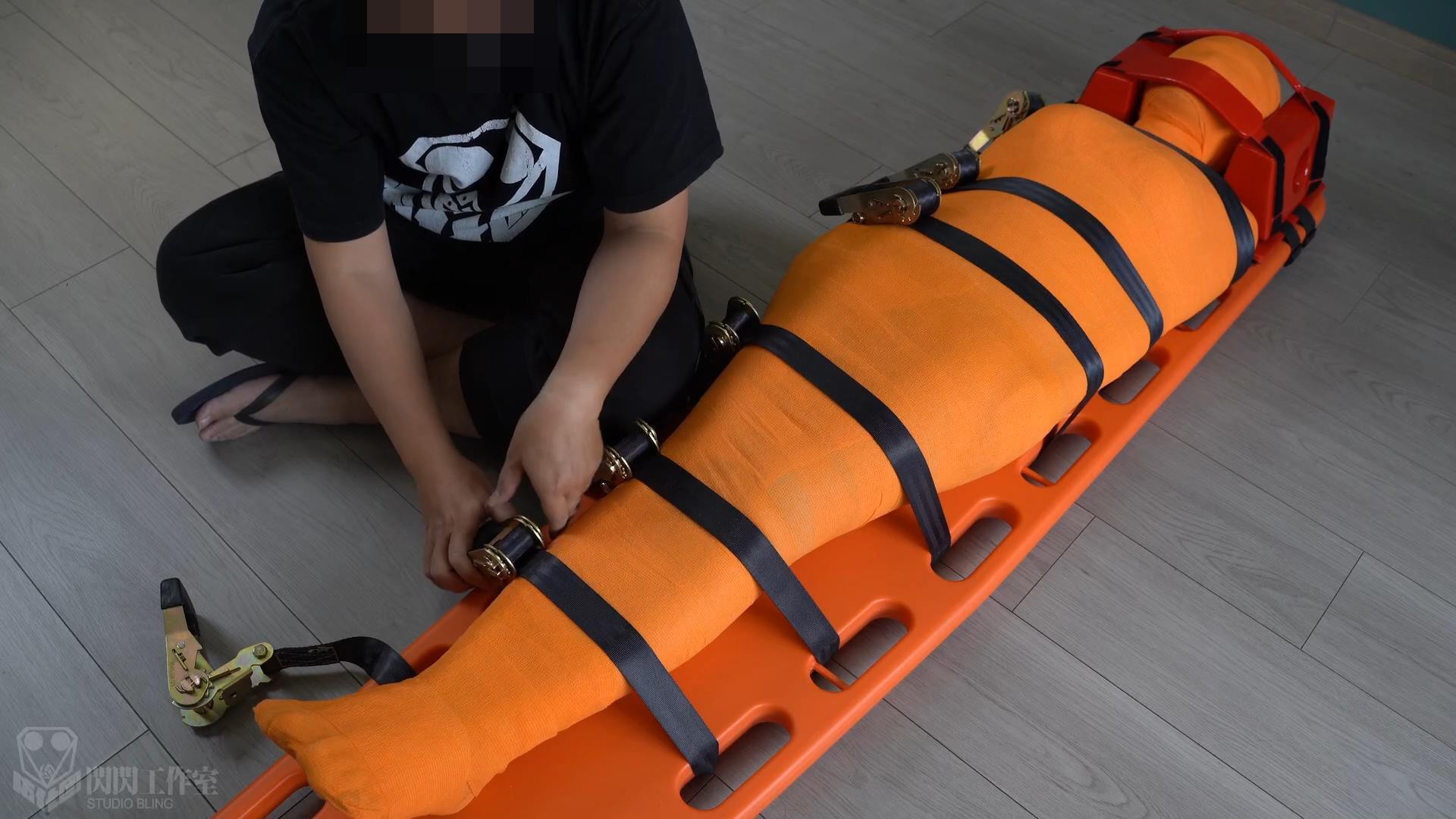まず彼女の頭部に隔離用の包帯を巻き始めた。安全を確保するため、口と鼻の部分に何層も巻いた。対象001の呼吸は包帯に阻まれ、苦しそうな音を立てていた。全身を包帯で包み終えた後、輸送中の安全を確保し、対象が逃げるのを防ぐため、対象001を輸送用担架に置き、テンショナー付きの結束バンドでしっかりと固定した。