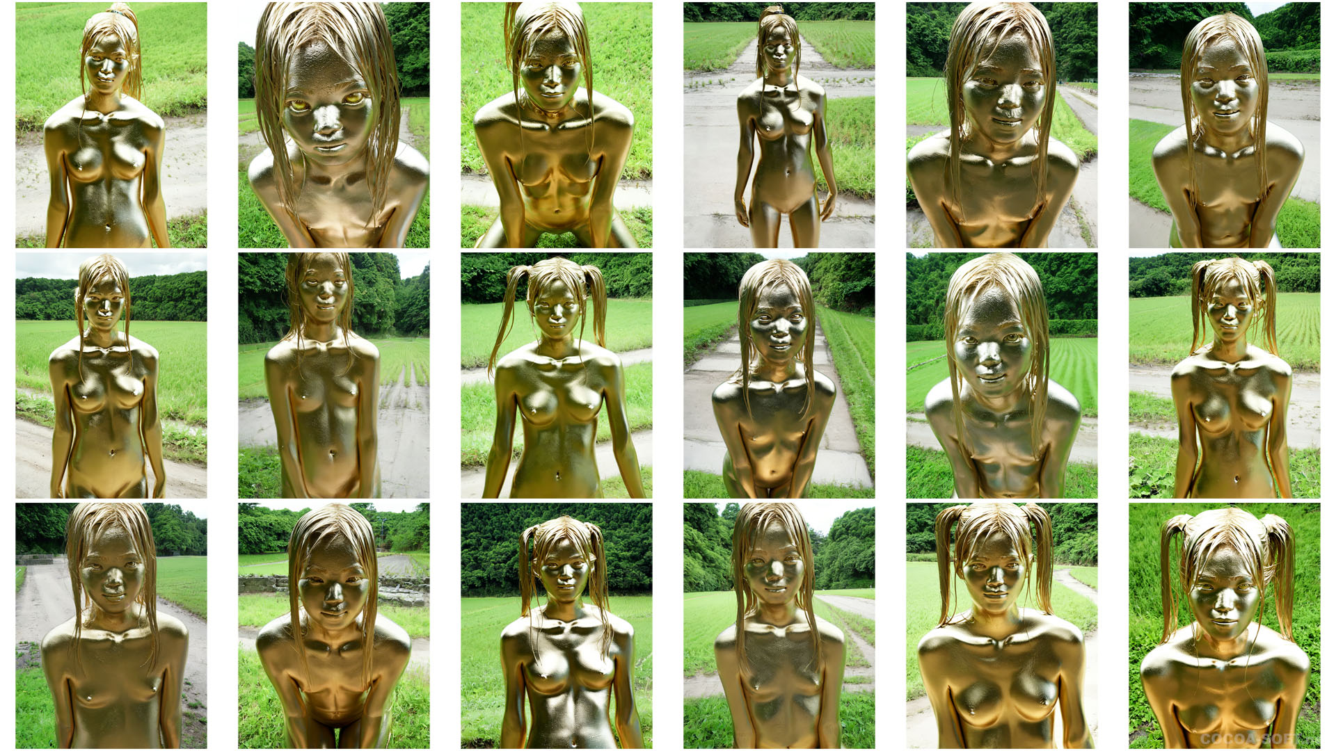 銀色のボディペイント姿で… 休日の学校で露出しちゃった♡