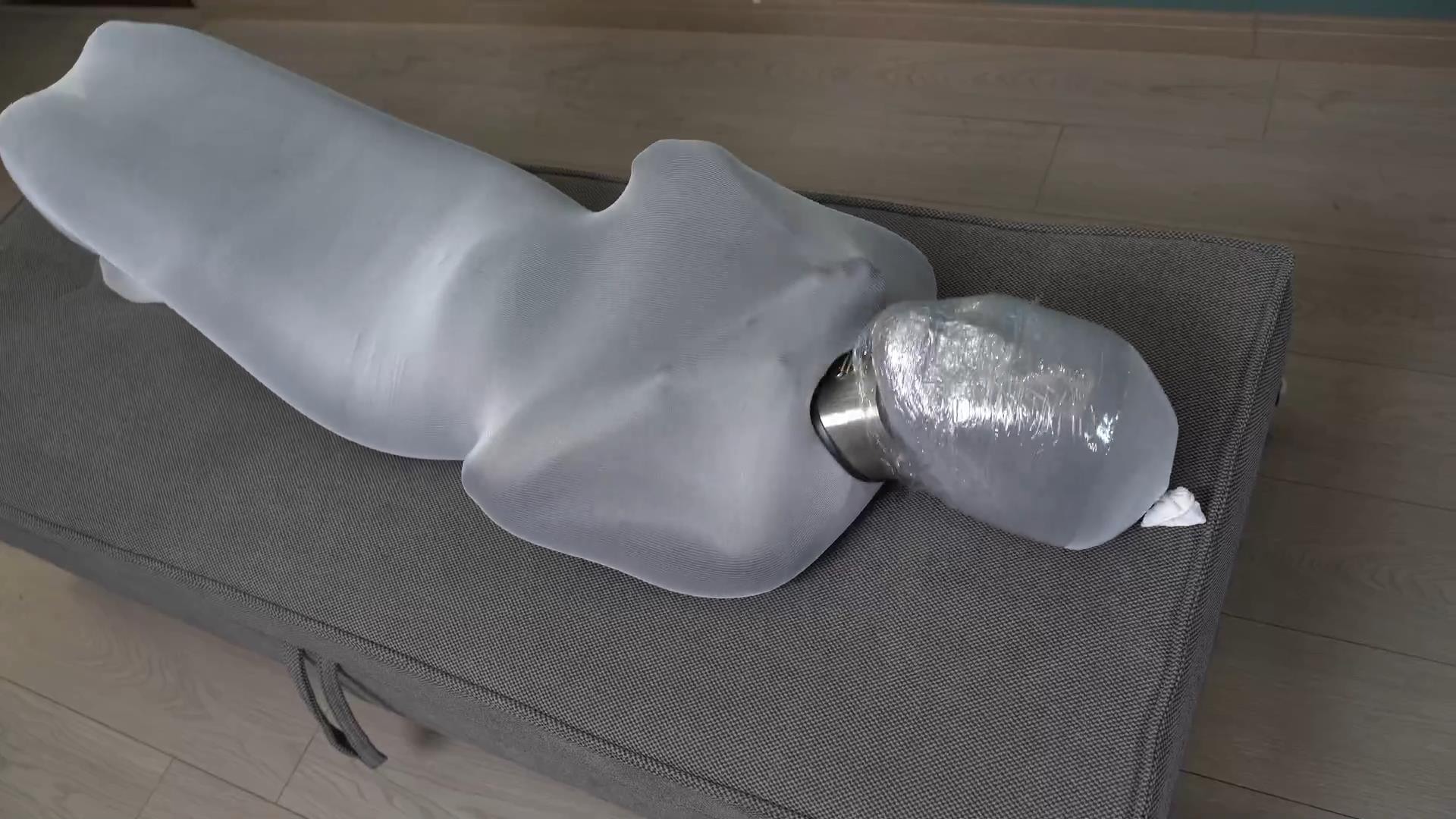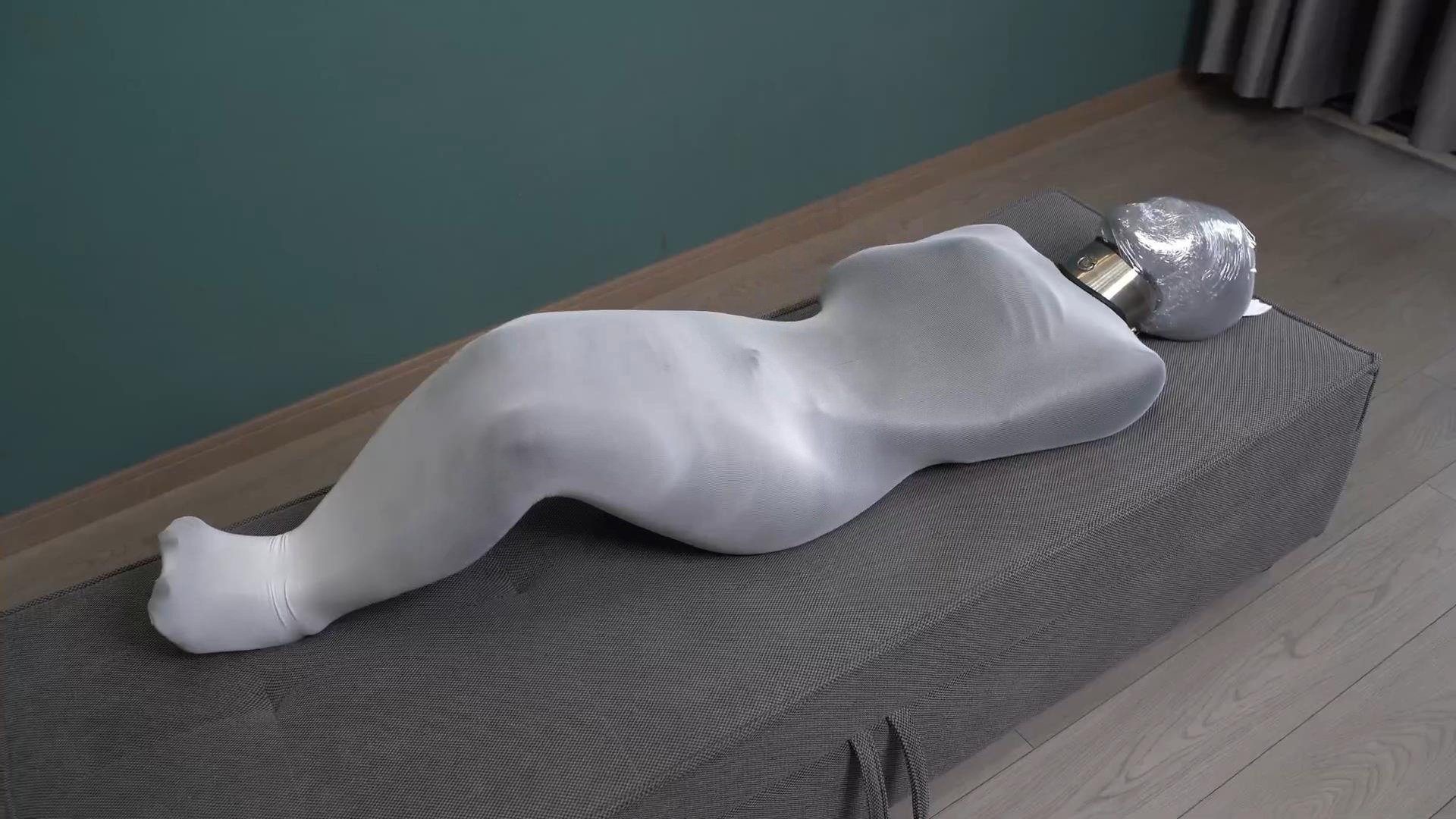 最初、パンスト寝袋の柔らかさが彼女を快適にさせていたが、私が彼女の頭をラップフィルムでぎゅっと巻き付けるまでは。