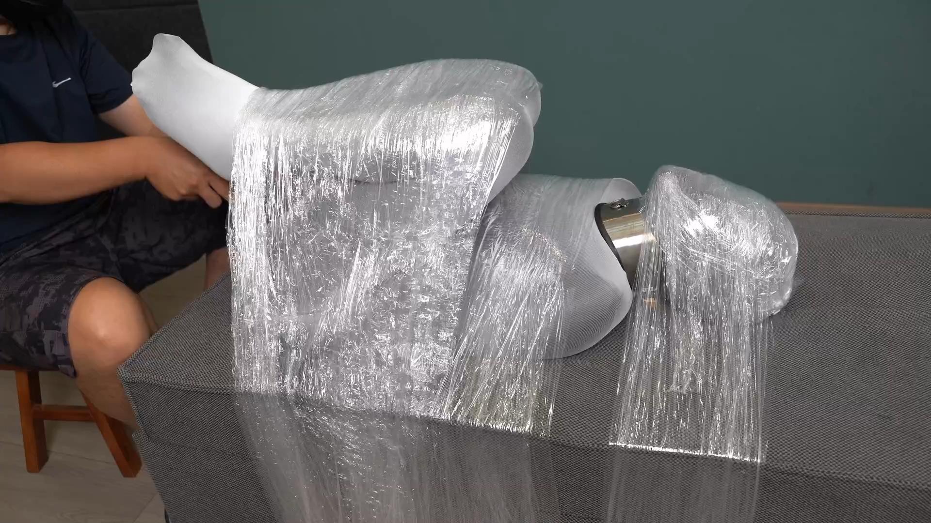 その過程は本当にストレス解消になった。彼女の人間の形が目の前で徐々に消えていくのを見ながら、2巻分の大きなラップフィルムを使い、彼女の足の裏だけが動ける状態にした。