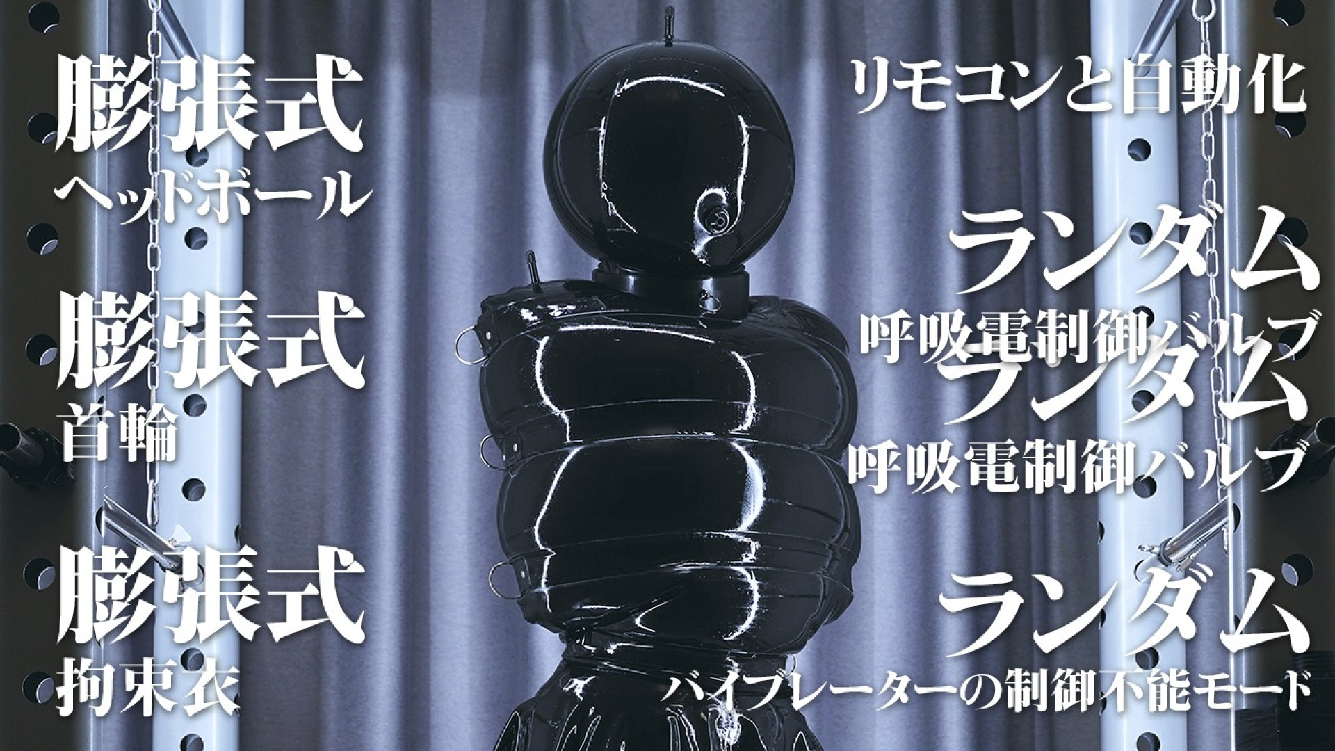 - 膨張式拘束衣:二層のラテックスで、強い圧迫感と蒸し暑さを提供。TOKIMEは汗だくで床に汗を流した。