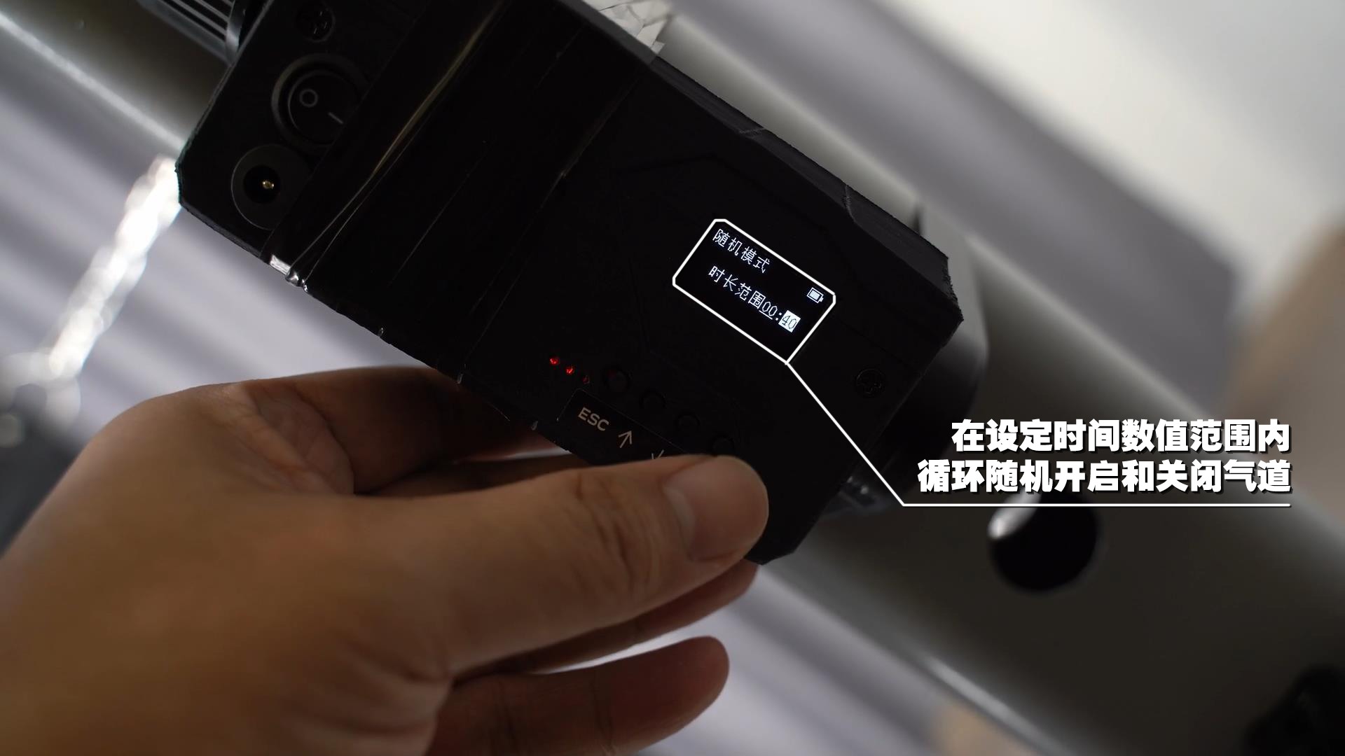 - 呼吸電制御バルブ:仟之Kのアップグレード版で、複数のモードを搭載。今回はランダムモードを使用し、設定された時間範囲内で、閉気時間と通気時間がランダムに変化し、そのように繰り返す。