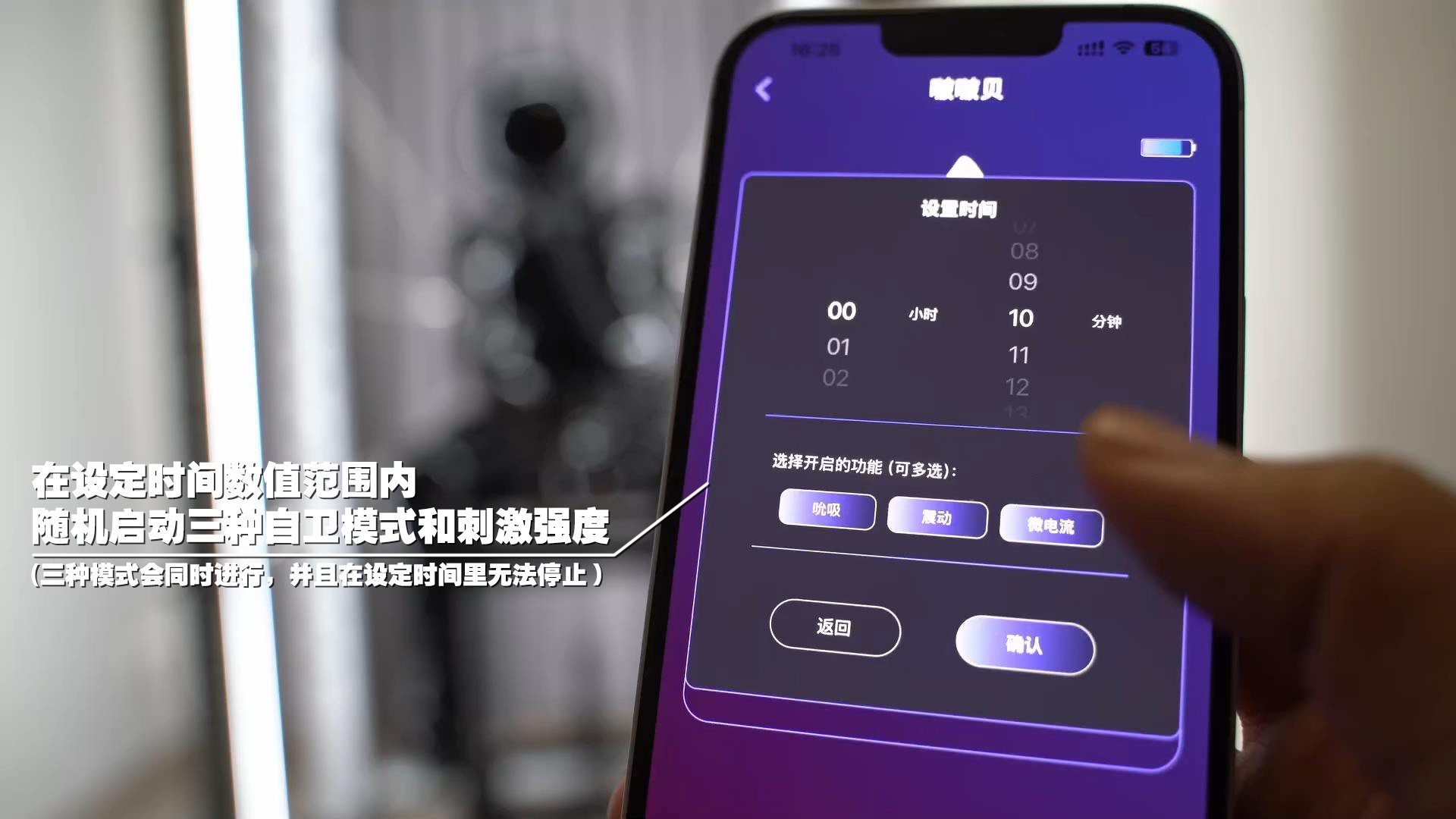 - 装着型振動玩具:制御不能モードを備え、設定時間内でさまざまな刺激方法がランダムに起動する。