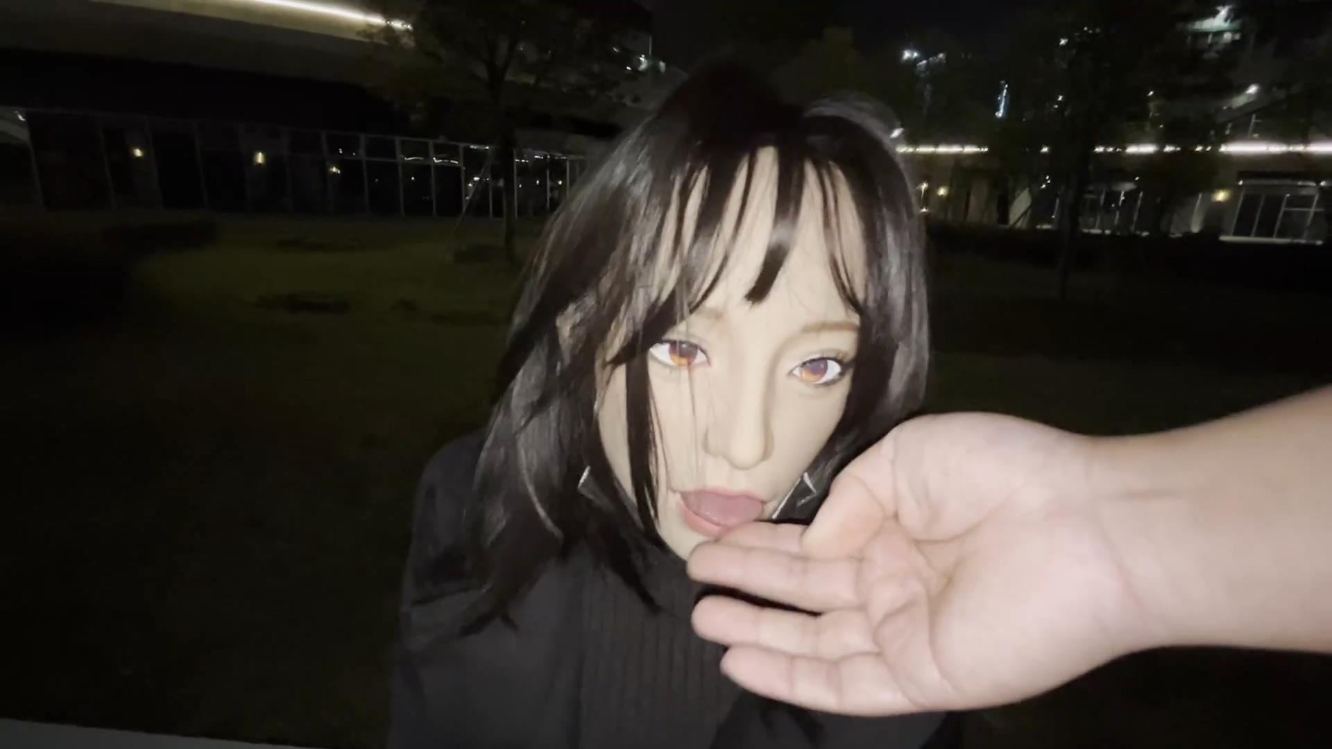 持ってきたのはやはりリアルフェイスマスクと高領セーター——ただ今回はタイトフィットタイプで、内蔵玩具付き。この組み合わせは完全に外出モードだね。郊外の夜は人通りが少なく、普段小心者の僕らも大胆になった。面具女になった時雨の手を引いて、ブラブラ散歩。